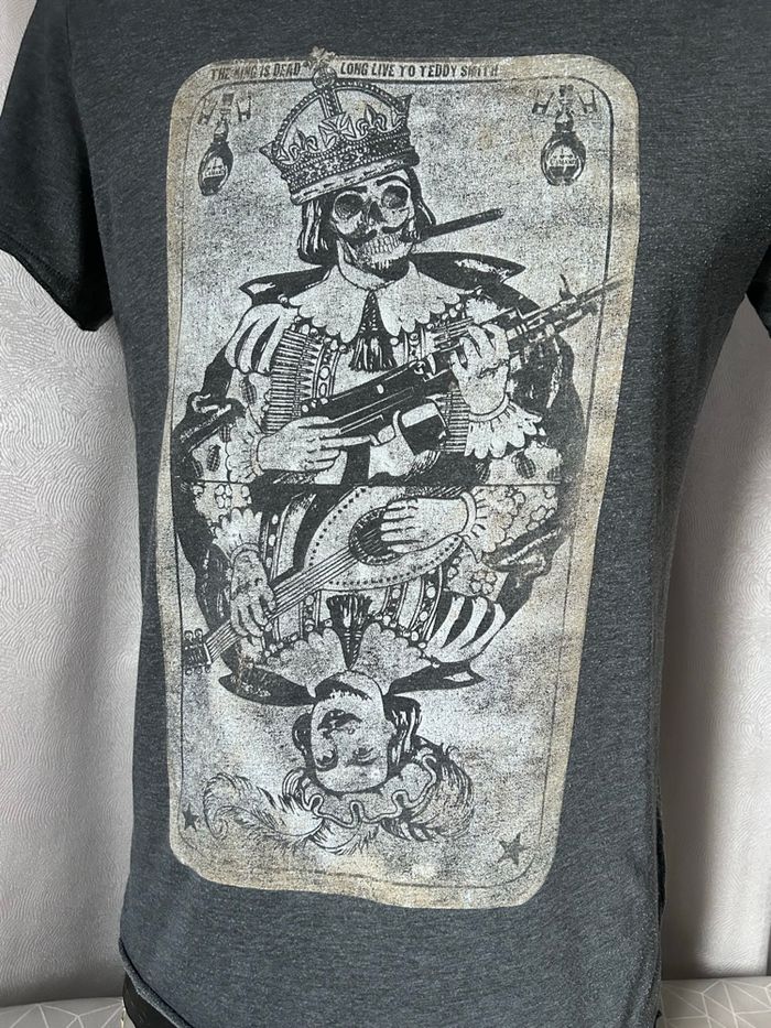 T-shirt gris tête de mort Manches courtes Slim fit Taille M Teddy Smith 60% coton 40% polyester Carrure 44 cm Aisselle à aisselle 52 cm Longueur 68 cm