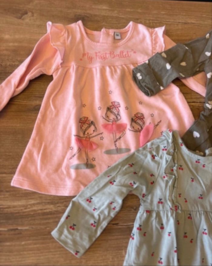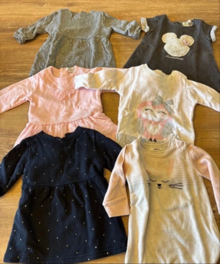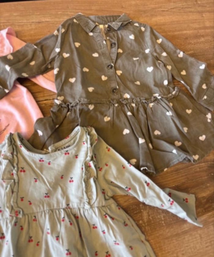 À vendre ce lot de 14 articles. 2 doudounes 1 hivers 1 mi saison 2 Robes manches courtes (jeans et la grise) 8 robes manches longues 1 sweat 1 pull En très bon état (Quelques articles peuvent avoir le prénom ou initiale de ma fille à l intérieur). Marque kiabi / orchestra / Disney … 🛍️ N’hésitez pas à regarder mon dressing vêtements filles de 0 à 24 mois / chaussures / jouets peluches 🛍️