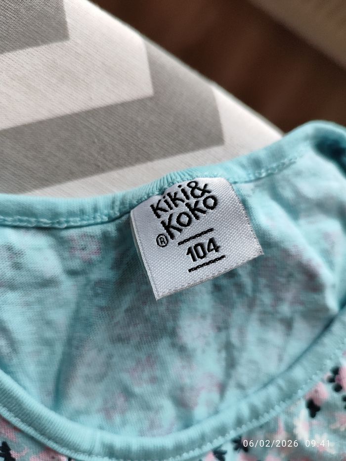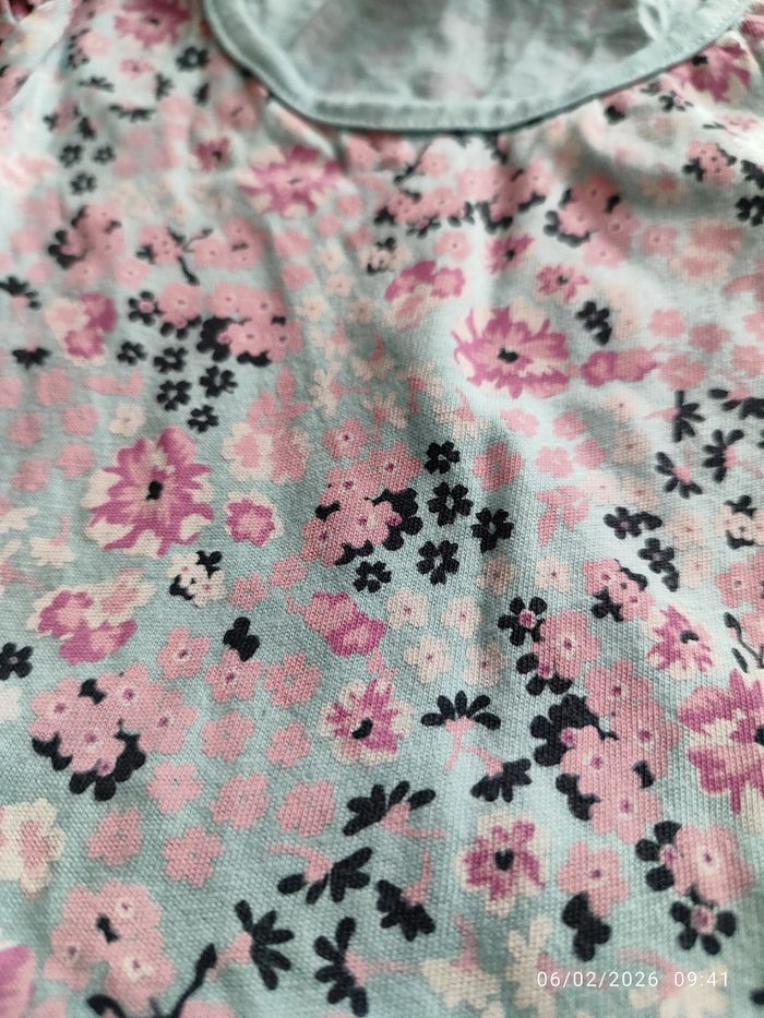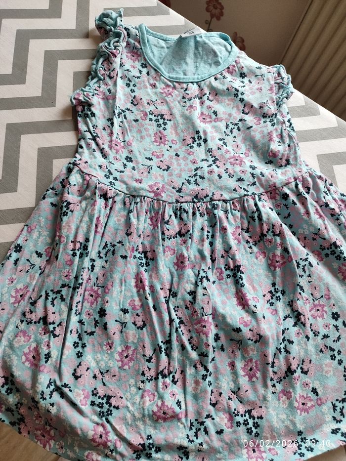 Très belle robe estivale fleurie sur fond bleu clair . Taille 104 . Très peu porté