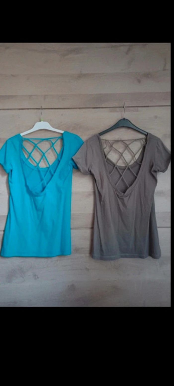 Lot de 2 tee shirts Original Tressé dans le dos Super qualité italienne 1 x bleu turquoise m 1 x gris marron l Diaza italia