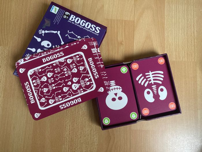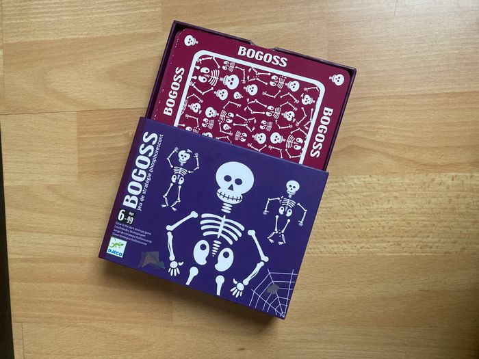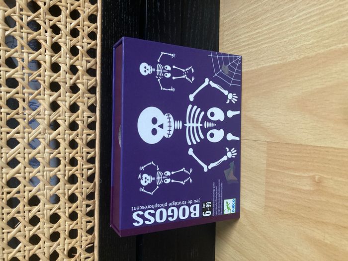 Jeu de cartes Bogoss de la marque Djeco. C'est un jeu de stratégie original où les squelettes sont phosphorescents (ils brillent dans le noir !). L'article est neuf. Les cartes sont impeccables et la boîte est dans un état parfait. Le jeu est bien entendu complet. Les règles du jeu sont incluses et disponibles en plusieurs langues. Idéal pour un cadeau d'anniversaire ou pour compléter une collection de jeux de société. #Djeco #Bogoss #JeuDeCartes #JeuNeuf #JeuDeSociete #JeuxEnfant #Phosphorescent #Cadeau #IdeeCadeau
