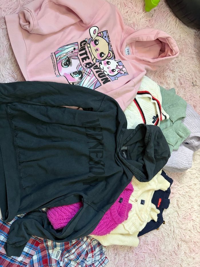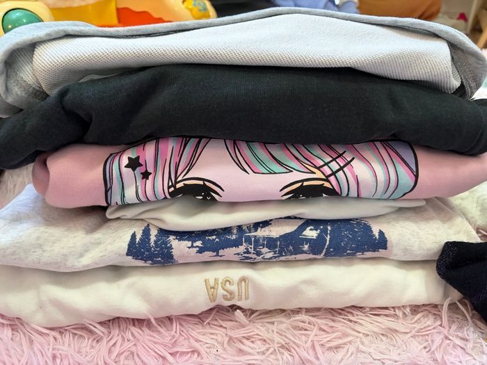 Pull, sweatshirt , chemise, divers marque: Zara, Kiabi, H&M . En bon etat. Ma fille elle a grandi .