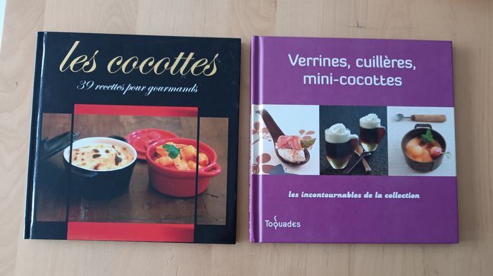 Bonjour, Vends un lot de 2 livres de cuisine / recettes : Les cocottes Les verrines, cuillères et mini-cocottes Très bon état