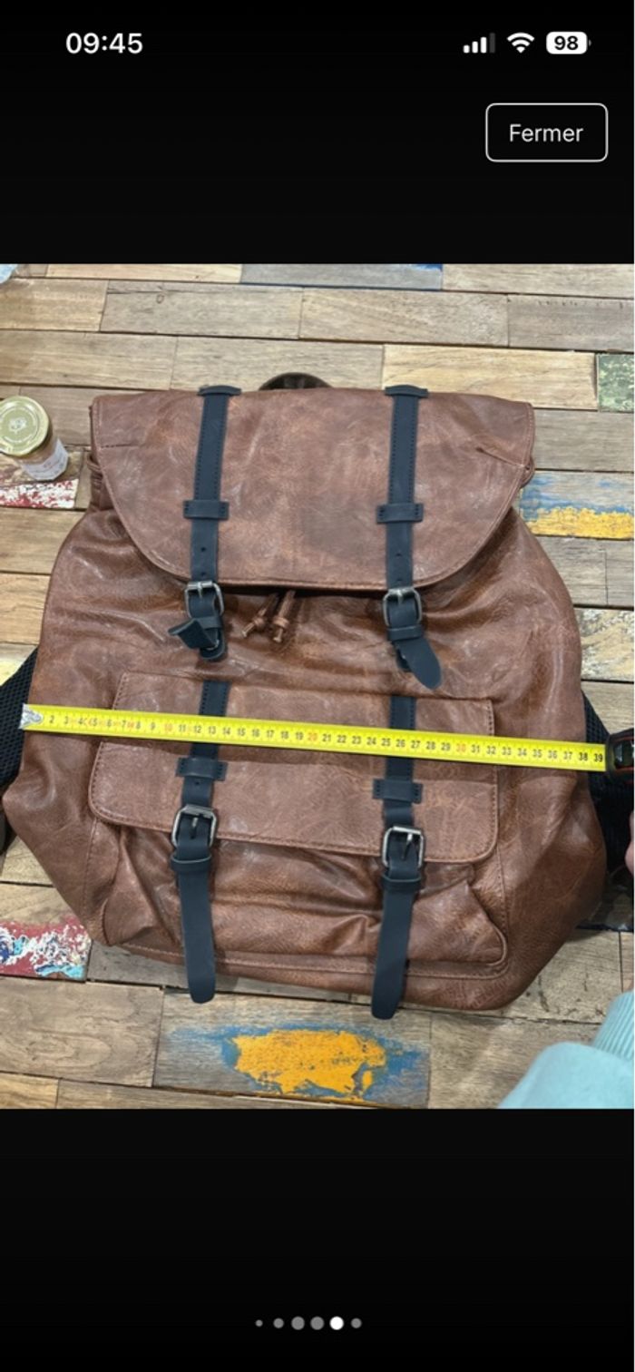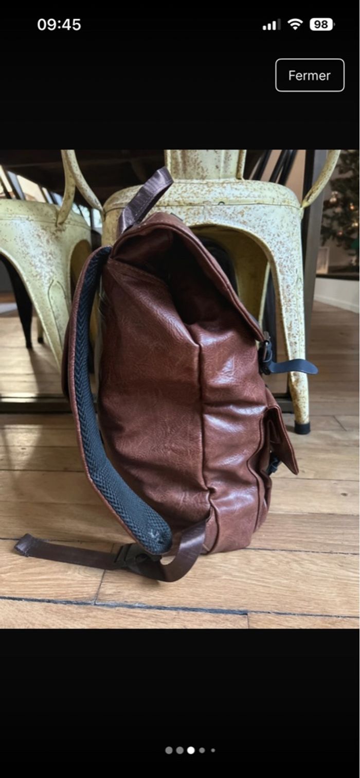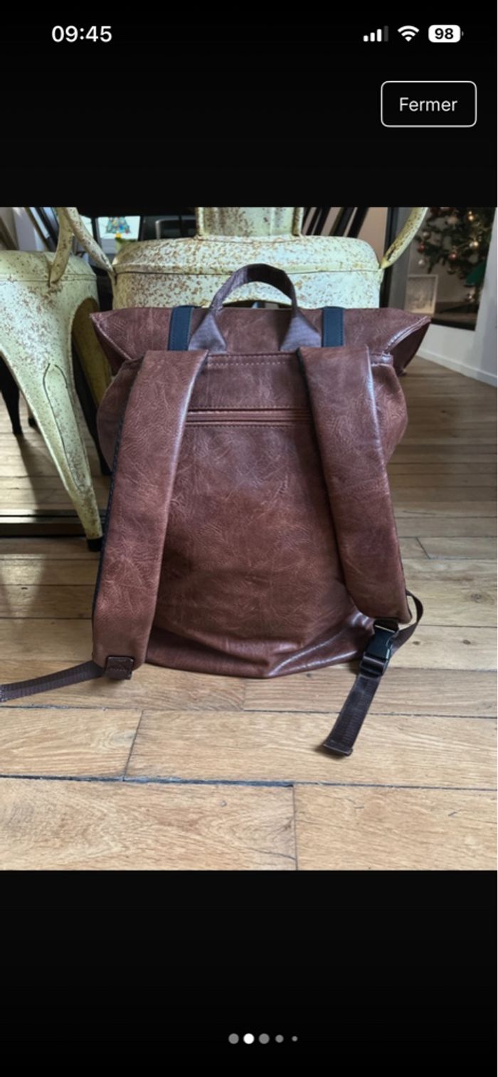 Sac à dos simili cuir marron et noir - photo numéro 4
