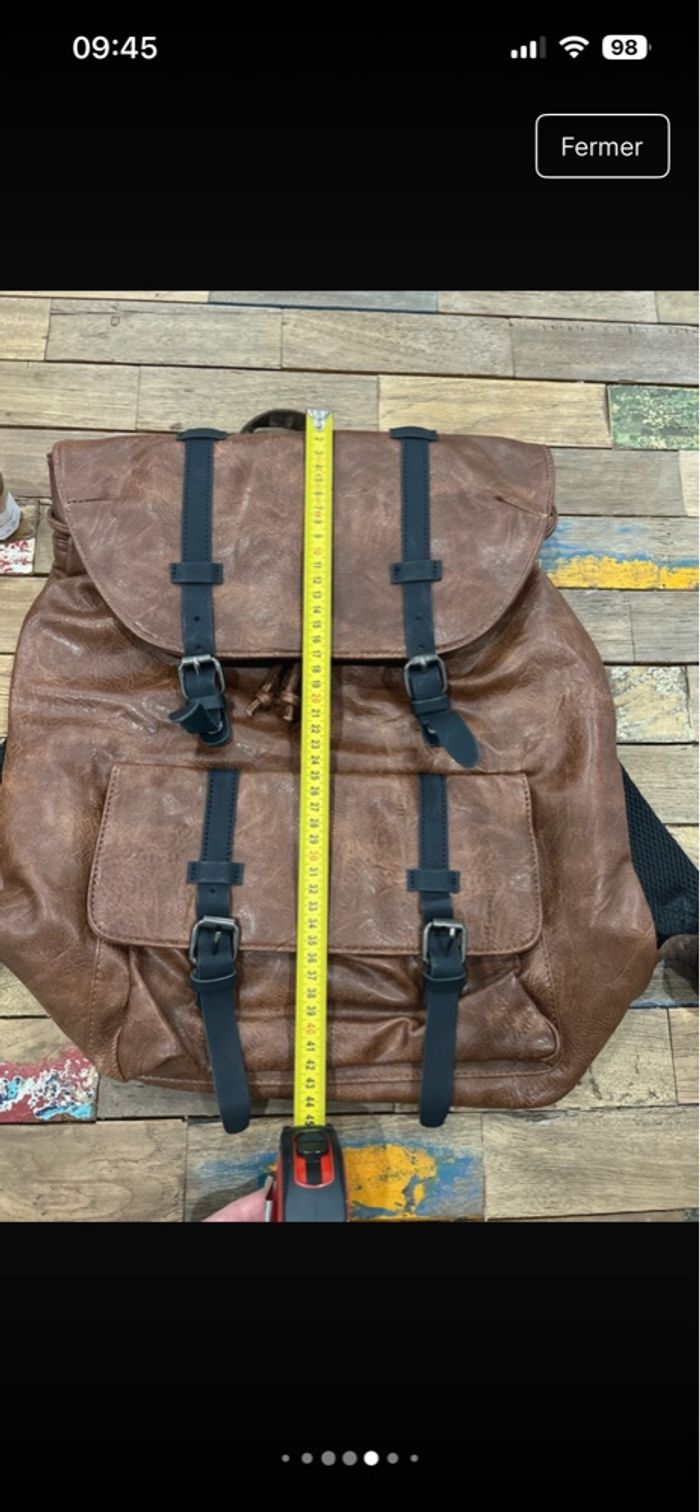 Sac à dos simili cuir marron et noir - photo numéro 6
