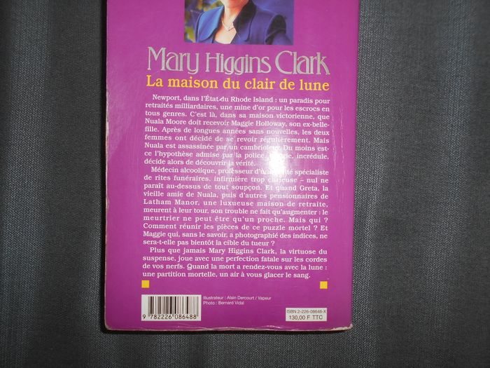 Vends ce livre: La maison du clair de lune (Mary Higgins Clark), en bon état (livre taché sur la tranche).