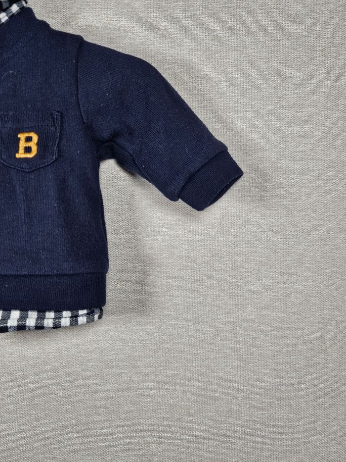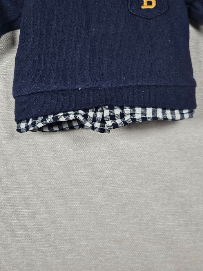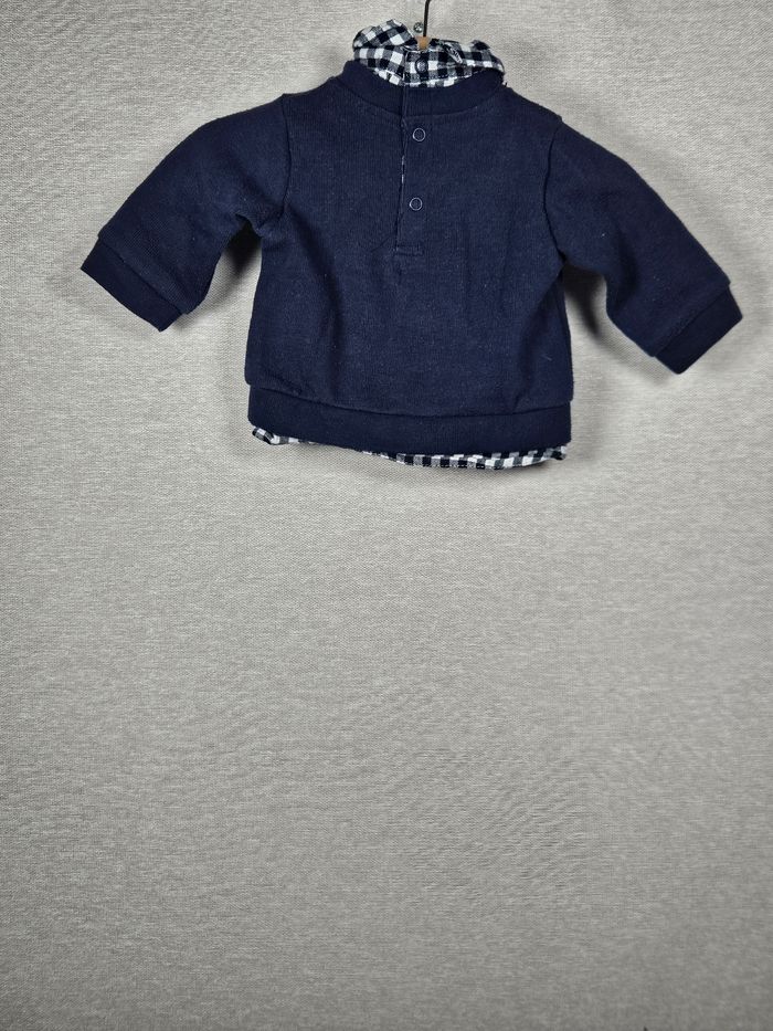 Hello ! 👋 Je te propose cette pièce sans marque, une super trouvaille pour le dressing de bébé 👶 Un pull trompe-l'œil très élégant avec son col et bas de chemise à carreaux vichy et son "B" brodé, parfait pour un look chic et confortable. Informations utiles: * 👕 Article : Pull 2-en-1 effet chemise * 📏 Taille : 3 mois * 🌈 Couleur : Bleu marine et carreaux noir/blanc * 🧵 Matière : 50% coton, 50% polyester * 🔍 À savoir : Ouverture pressions au dos pour l'enfilage * ✨ État : ⭐⭐⭐⭐ Les petits + : 🏡 Logement non fumeur et sans animaux. 📦 Envoi rapide et soigné. N'hésite pas si tu as la moindre question ou si tu veux d'autres photos ! Je suis là. 😉 #pullbebe #trompeloeil #3mois #marine #vichy #chic #bebegarcon #hiver #modebebe #elegance