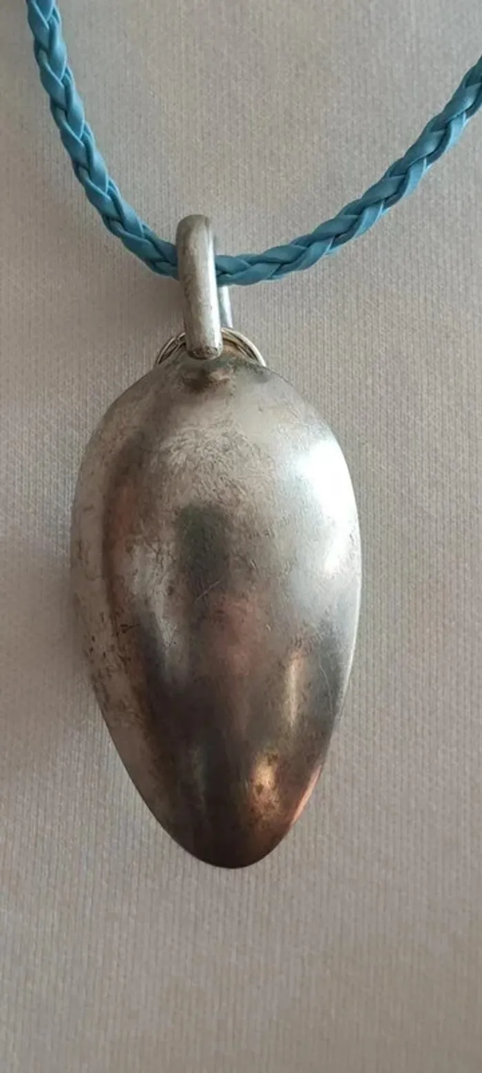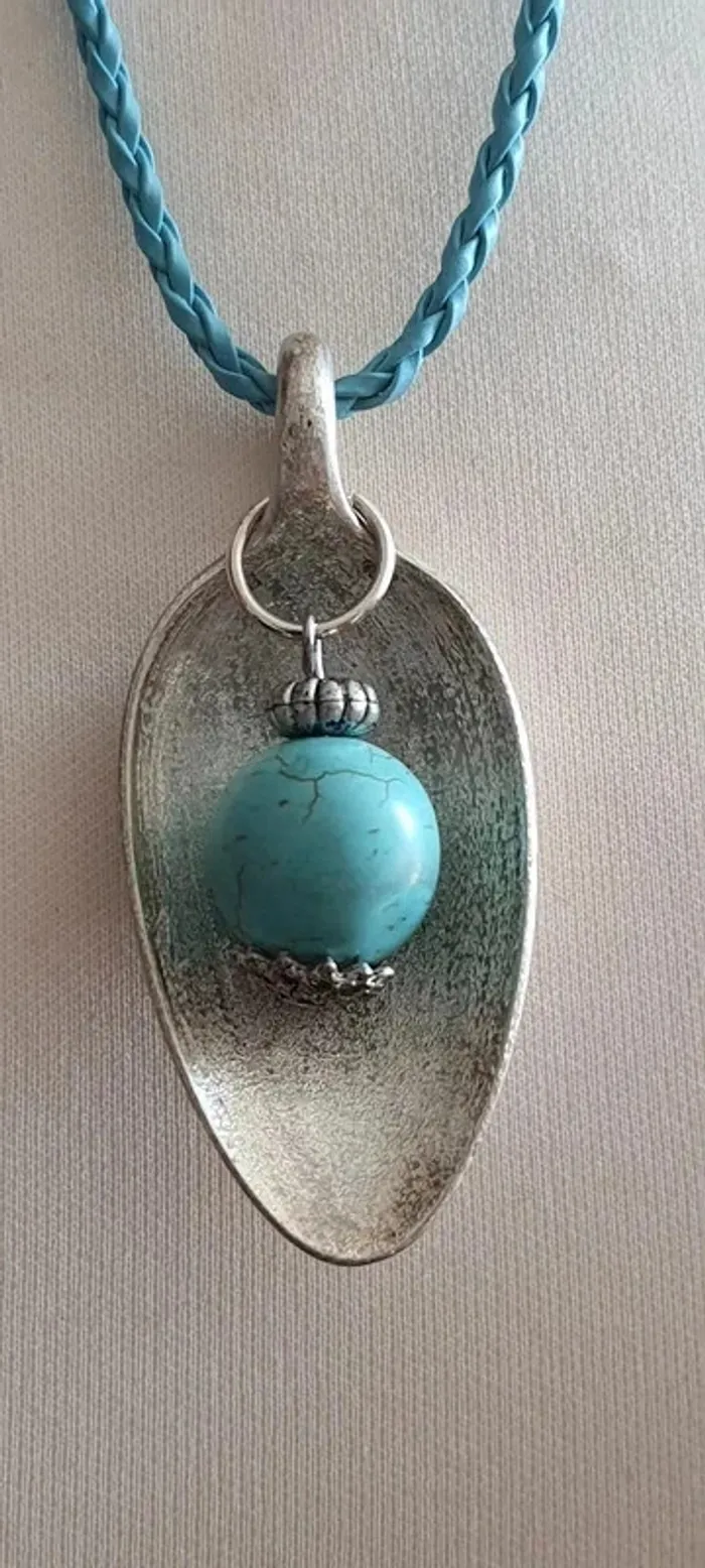 Collier boule bleu dans cuillère en argent véritable - photo numéro 1
