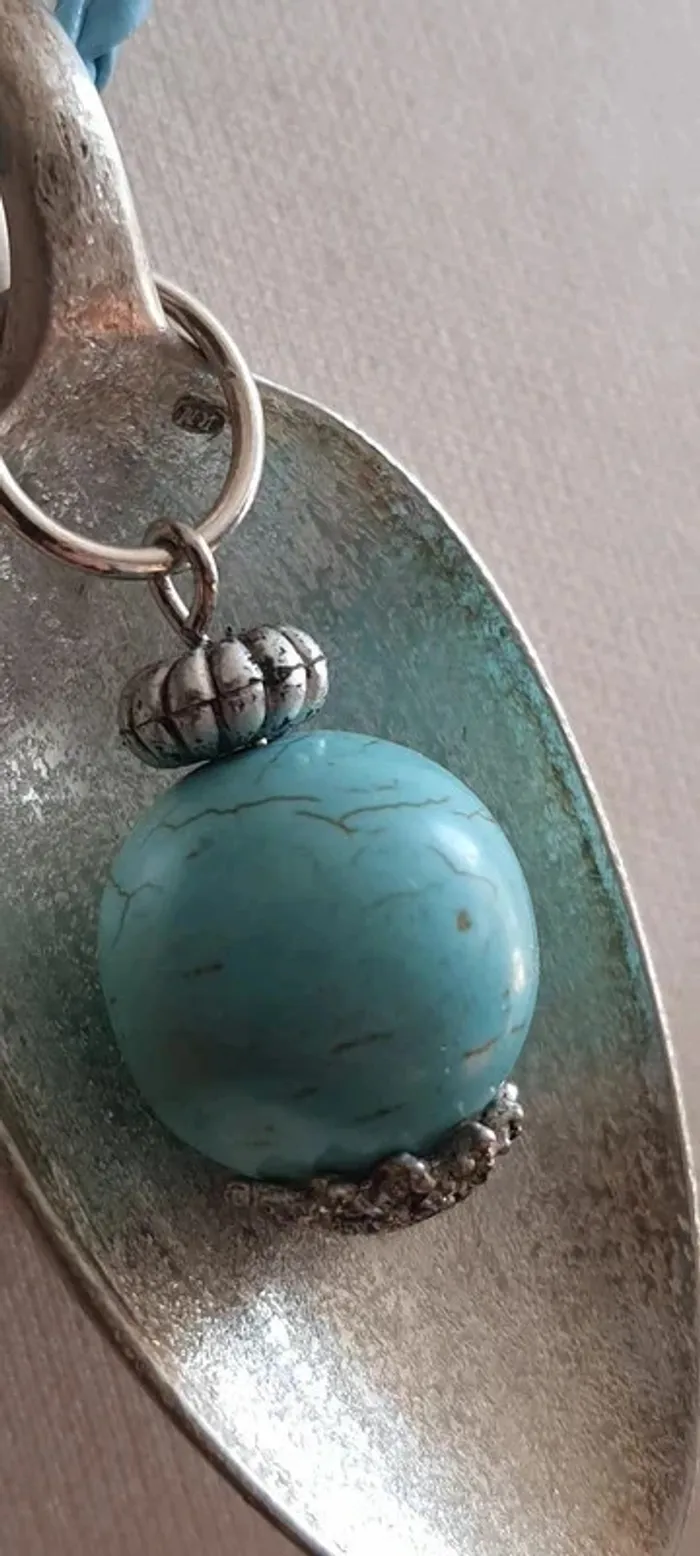 Collier boule bleu dans cuillère en argent véritable - photo numéro 5