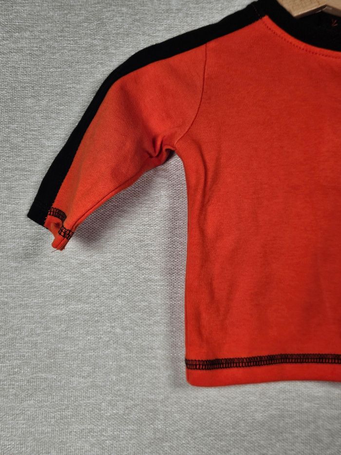 Hello ! 👋 Je te propose cette pièce sans marque, une super trouvaille pour le dressing de bébé 👶 Un t-shirt manches longues orange au look sportif avec ses bandes noires sur les manches et ses surpiqûres contrastées. Informations utiles: * Article : T-shirt manches longues style sport * Taille : 3 mois * Couleur : Orange et noir * Matière : 58% coton, 42% polyester * 🔍 À savoir : Ouverture boutonnée au dos pour faciliter l'enfilage * État : ⭐⭐⭐⭐ Les petits + : 🏡 Logement non fumeur et sans animaux. 📦 Envoi rapide et soigné. N'hésite pas si tu as la moindre question ou si tu veux d'autres photos ! Je suis là. 😉 #tshirtbebe #mancheslongues #3mois #orange #sport #sportswear #coton #garcon #bebe #misaison
