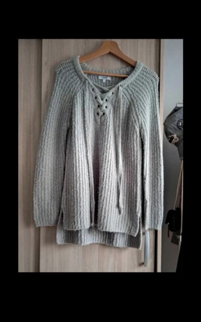 Bonjour Jean vends un joli pull couleur gris avec son bel effet argenté 2 fentes sur le côté chaud confortable parfait avec un legging effet cuir couleur noir photo n°4. Pour un style branché et beau porté 1 fois donc comme neuf.
