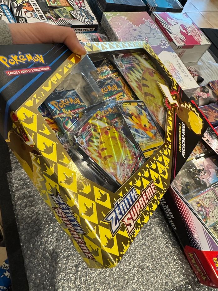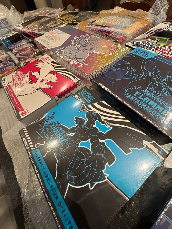 Bonjour je vends une partie de ma collection Pokémon contenant : Etb foudre noir/flamme blanche x2 - coffrets eaux florissantes x2 - collection classeur flamme blanche foudre noir - UPC 8.5 - Coffret figurine 8.5 x1 - collection classeur 8.5 x1 - coffret poster 8.5 X1 - coffret poster 10.5 x1 - mangakids ultra-prisme x3 - pikachu vmax zénith suprême - mini tins kanto. x5 - mini tins 10.5 x4 - bunale mega evo - bundle foudre noir - artset ev8 - artset ev10 - ev9 booster ×2 - Etb me2 x2 J’aimerai de préférence vendre tout d’un seul coup et remise en main propre sur Caen.