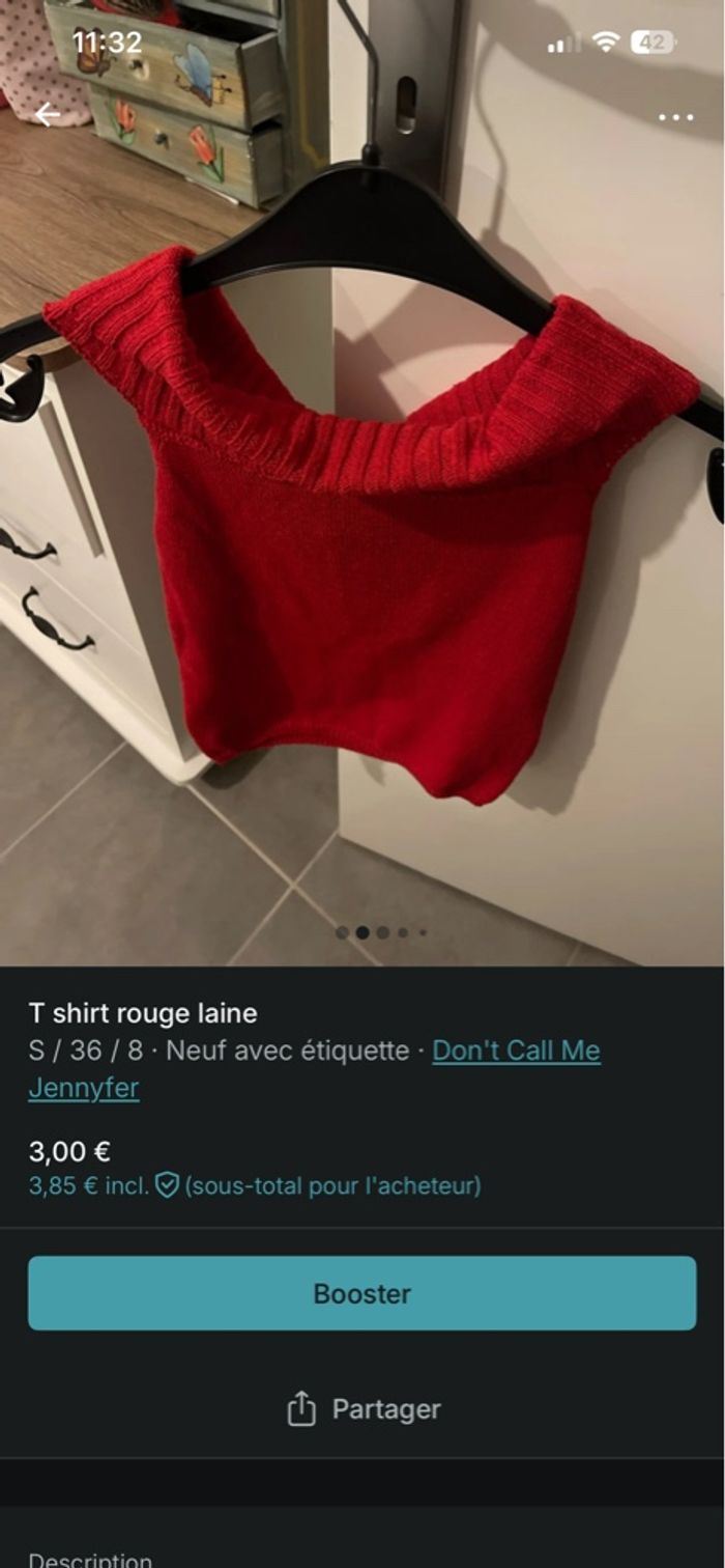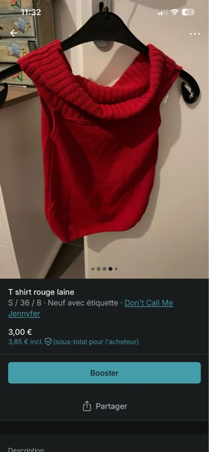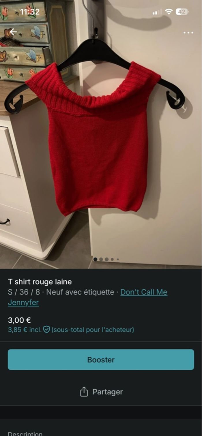 Haut rouge coton  - photo numéro 3