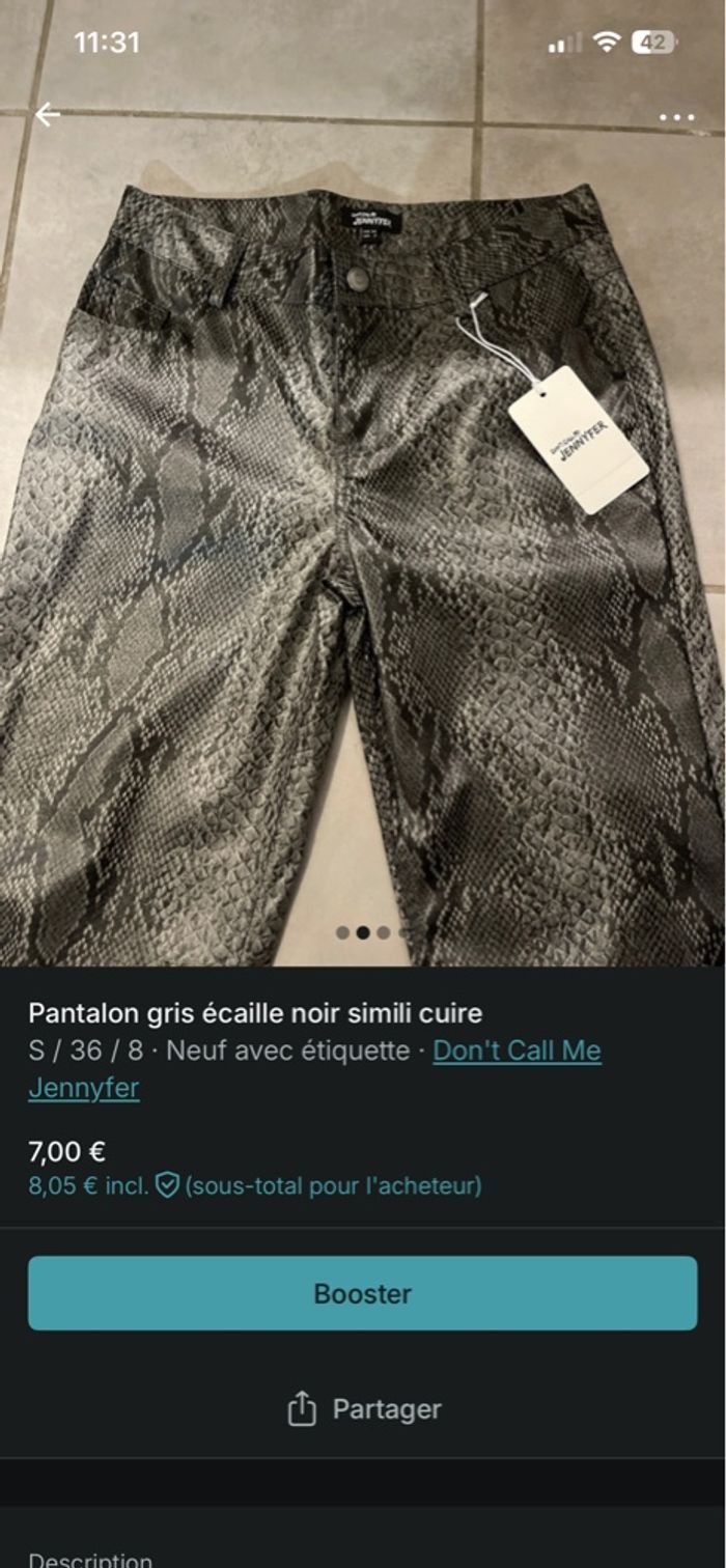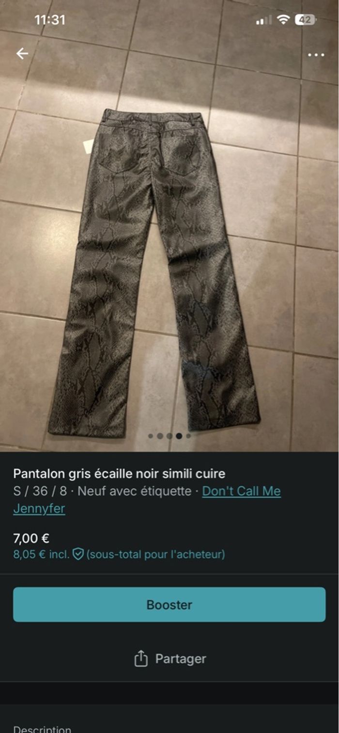 Pantalon gris effet croco simili cuire  - photo numéro 5