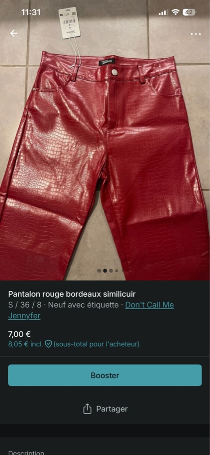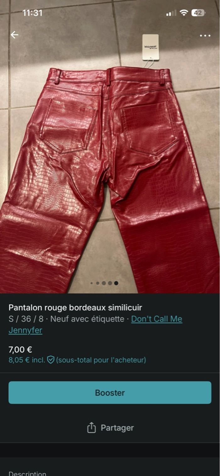 Pantalon rouge effet croco similicuir  - photo numéro 5