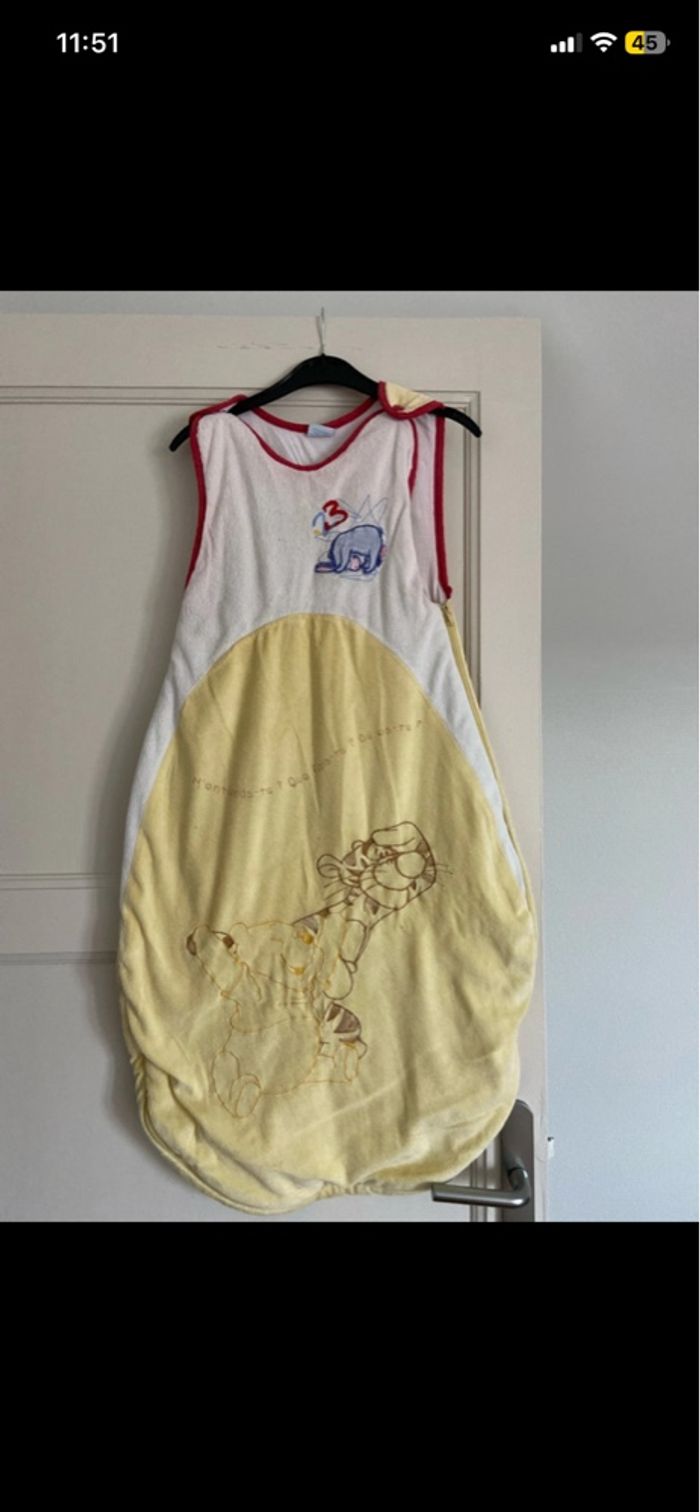 Lot de gigoteuses 1 chaude Disney avec Winnie l’ourson et tigrou ( le contour rouge à déteint), et 1 légère kiabi rose avec possibilité d’enlever les manches.
