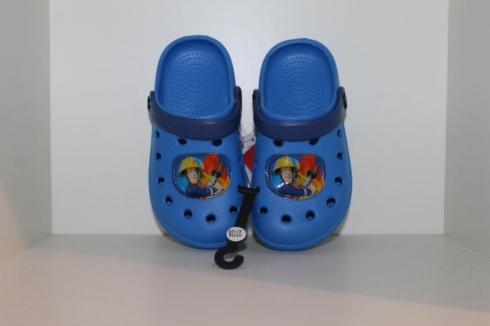 superbe sabots sam le pompier bleu et lanière plus foncée double pointure 27/28 neufs avec étiquettes,idéal plage dehors jardin ou en chaussons à la maison. votre enfant sera heureux de se promener avec son héros préféré réf 2075 n'hésitez pas à faire un lot. #sabots #crocs #sam le pompier #fireman sam #pompier