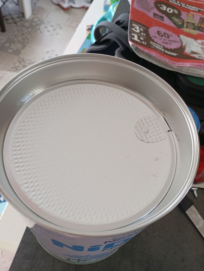 Boite nidal gest 1, nous nous étions trompé de lait lors de l'achat, couvercle en plastique uniquement ouvert mais le produit est encore scellé. Dluo février 2026