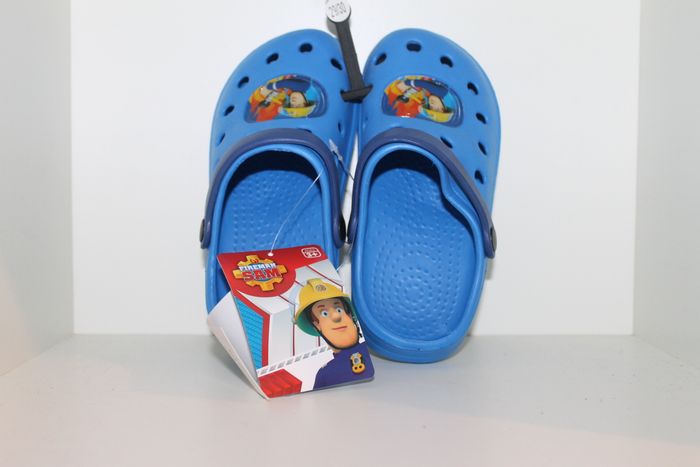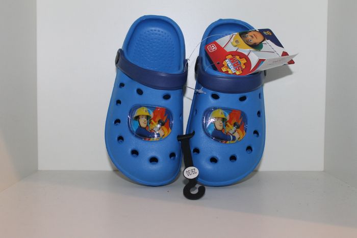 superbe sabots sam le pompier bleu et lanière plus foncée double pointure 29/30 neufs avec étiquettes,idéal plage dehors jardin ou en chaussons à la maison. votre enfant sera heureux de se promener avec son héros préféré réf 2075 n'hésitez pas à faire un lot. #sabots #crocs #sam le pompier #fireman sam #pompier