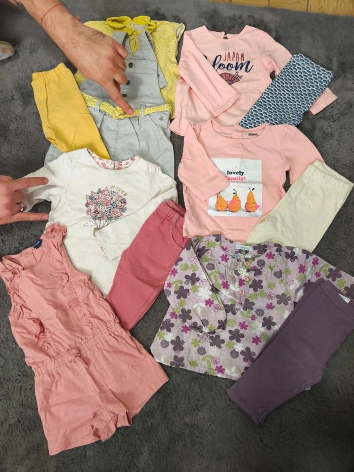 📏 Taille : 12 mois 🌸 Marques : Kiabi, La Halle, Orchestra, Kimadi, Terre de Marin, Disney, Obaïbi, Creeks, Gémo, Du Pareil au Même, Tape à l’œil, Plus, Berlingot, In Extenso, Kitchoun 📦 État : Très bon état général (certaines pièces neuves, quelques pièces avec défauts signalés) Grand lot de 50 vêtements bébé fille, idéal pour une garde-robe complète toute l’année. 👗 Composition du lot : 8 leggings 6 robes 11 tenues hiver 2 tenues été 3 gilets 5 hauts manches longues 1 combinaison 3 pantalons 🧸 Plusieurs articles en très bon état ou neufs 🔍 Quelques pièces présentent des taches, toutes signalées clairement en photo (taches dues à des bains de légumes ou de sirop) 🔹 Lot économique et pratique pour habiller bébé au quotidien 🔹 Vêtements variés, de marques reconnues et de qualité 💯 Excellent rapport qualité/prix, parfait pour compléter la garde-robe de bébé