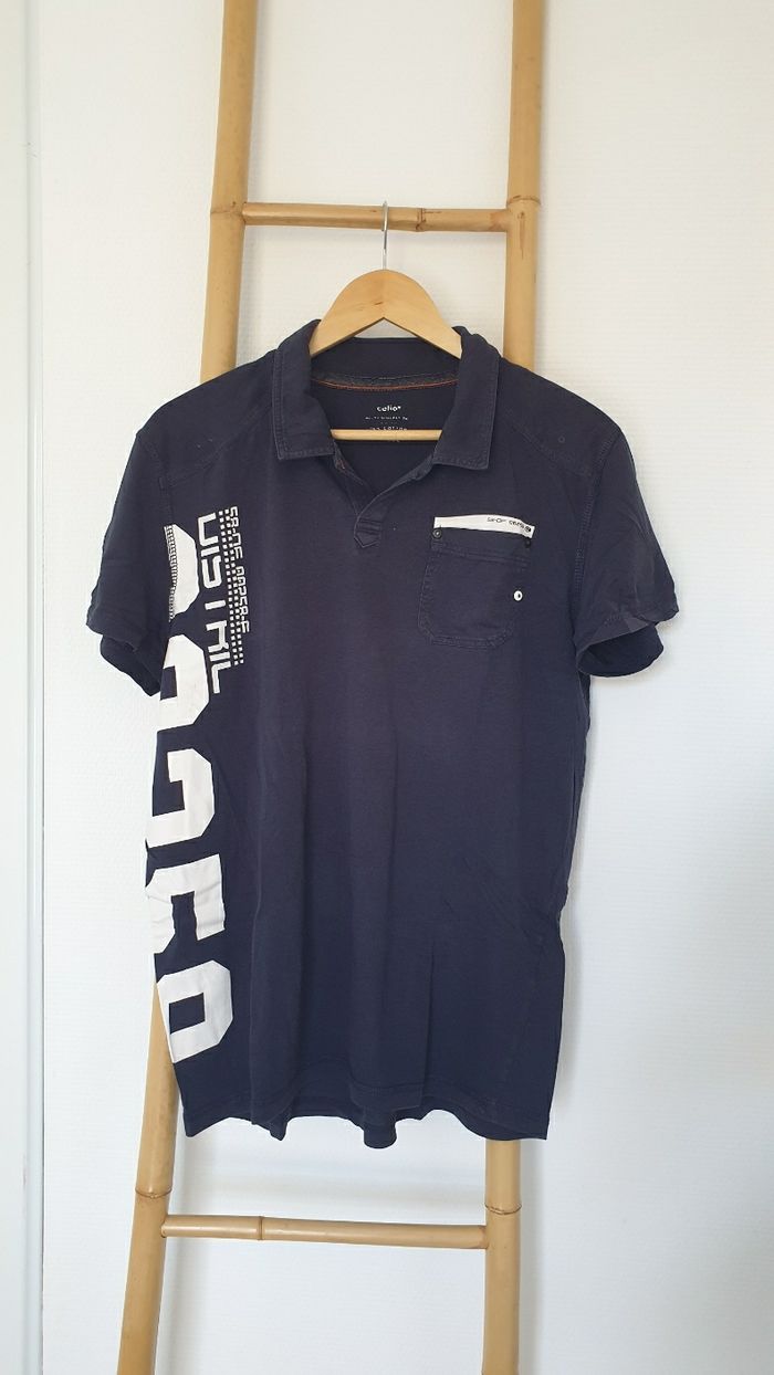 Tee-shirt homme Celio taille L coton bleu Bon état général mais le flocage blanc est craquelé