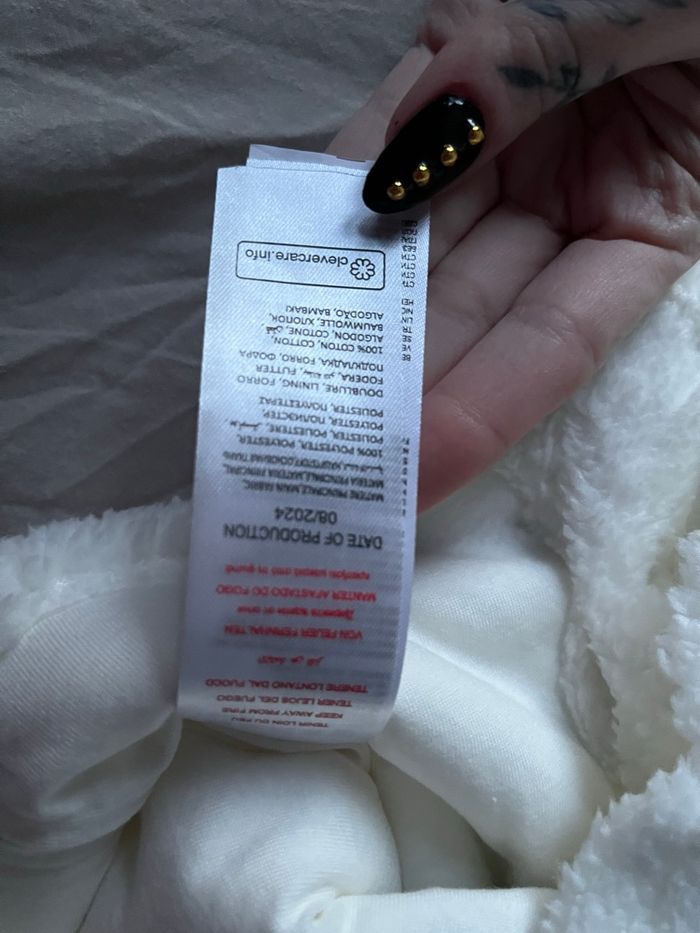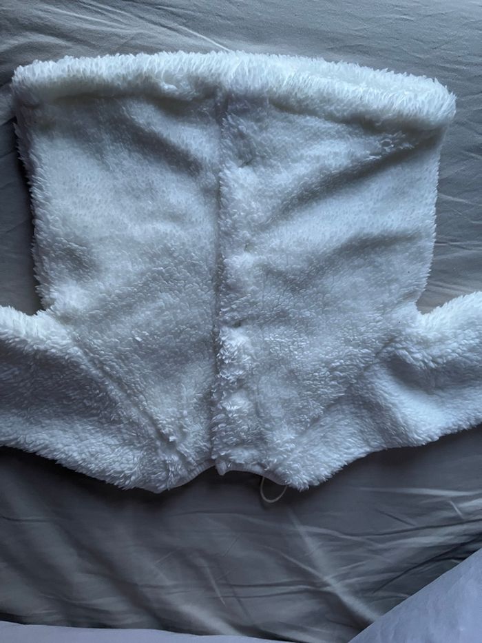Adorable haut de pyjama bébé couleur crème, avec un petit motif lapin 🐇 Matière ultra douce effet moumoute / plaid, parfaite pour garder bébé bien au chaud. ✨ Détails : • Extérieur 100 % polyester effet moumoute • Doublure intérieure 100 % coton, douce pour la peau • Ouverture par pressions dans le dos, très pratique • Jamais porté : étiquette retirée mais le cordon est encore présent • État neuf 📏 Taille 6 mois Idéal pour les nuits d’hiver ou les moments cocooning 🤍