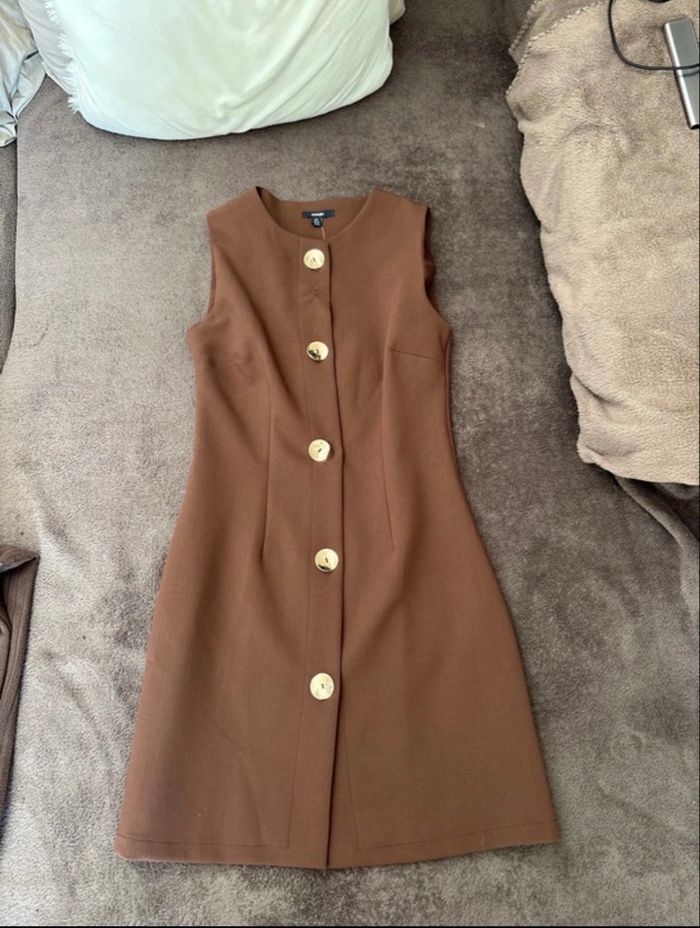 Robe cintré marron avec bouton doré  - photo numéro 1