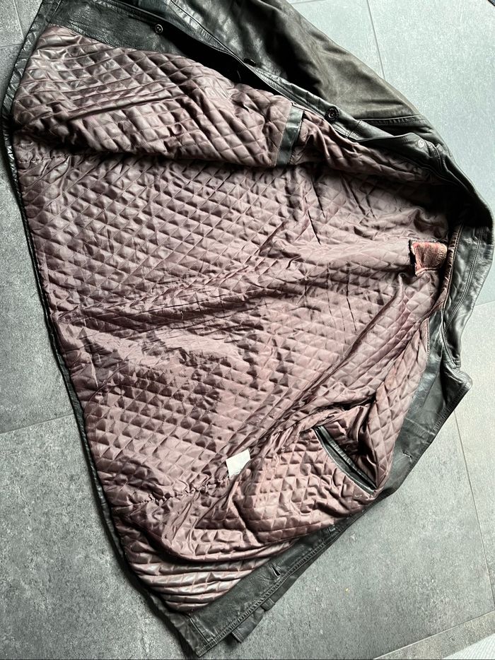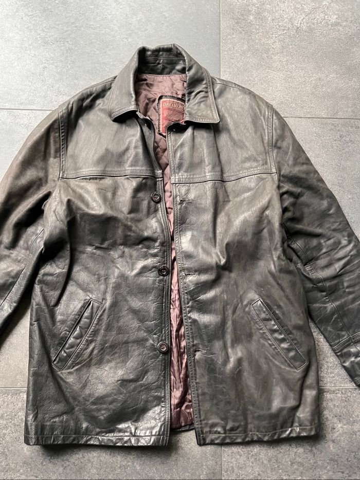 Veste vintage en cuir homme Dreamers Veste 3/4 en cuir pour homme marque française Dreamers Taille M Marron très foncé Cuir de qualité, veste lourde. Fermeture par boutons, Poches extérieures. A vécu, cuir patiné/vieilli par endroits, quelques variations de couleurs. Dimensions: Hauteur totale : 79 cm environ Aisselle à aisselle : 54 cm environ Épaule à épaule : 48 cm Manches : 62 cm environ Largeur en bas de veste 57,5 cm environ