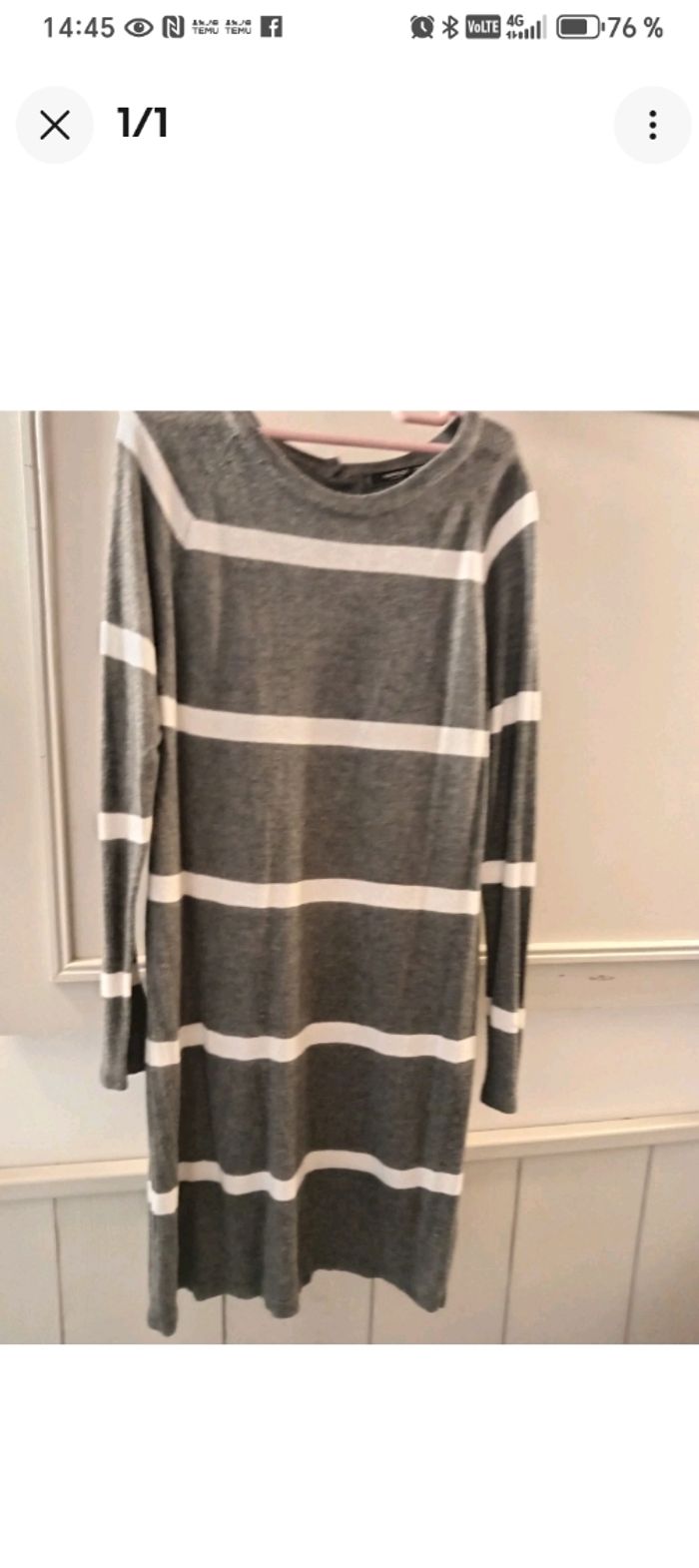 Robe automne et hiver Mango grise et blanche. Longueur 84cm et largeur de poitrine 46cm. Prix estimé en magasin 29 €90.