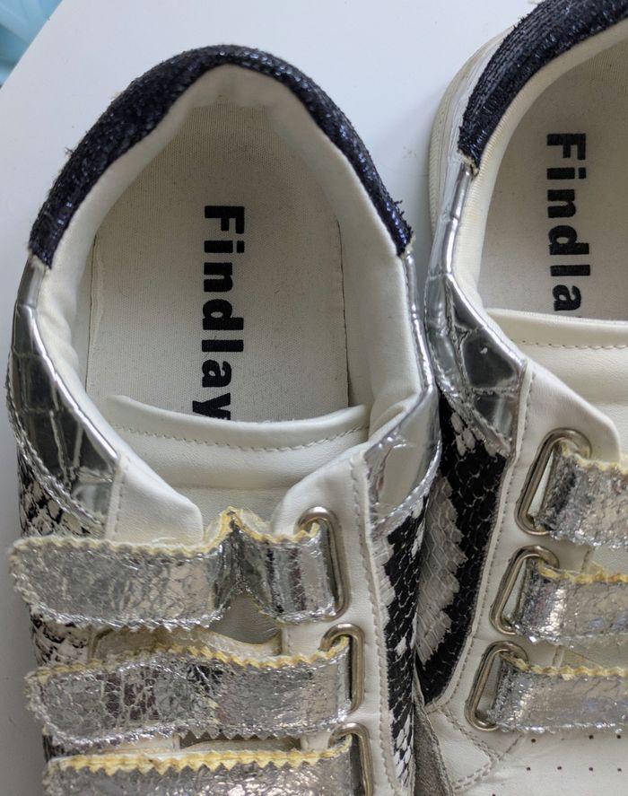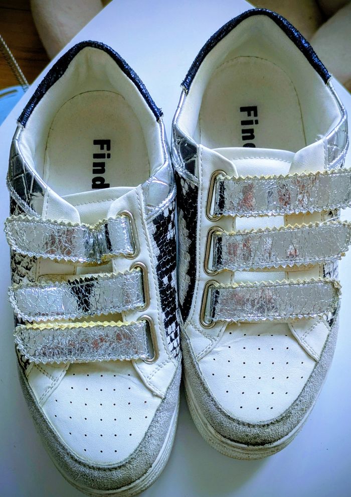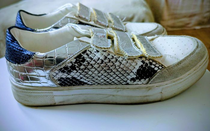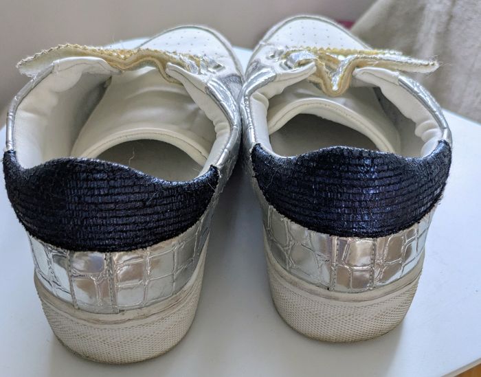 Basket femme Findlay argentée , imitation serpent sur les côtés et derrière bleu marine paillettes. Taille 38.