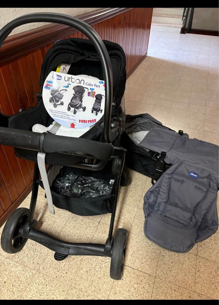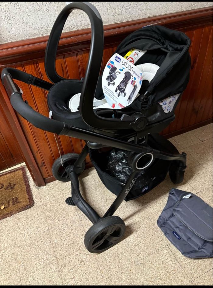 Poussette Chicco 3 en 1 en bon état juste un côté de la poignée endommagé