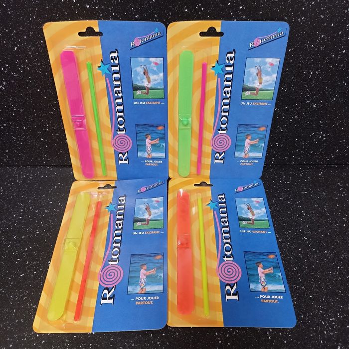 Lot de 4 jouets vintage Neuf sous blister 1992 Rotomania, aero props, hélice volante 📌 Envoi rapide et soigné 📌 Maison non fumeur et sans animaux