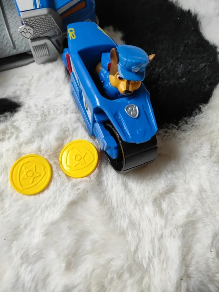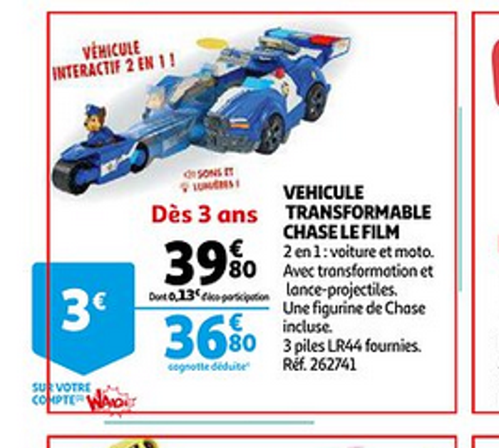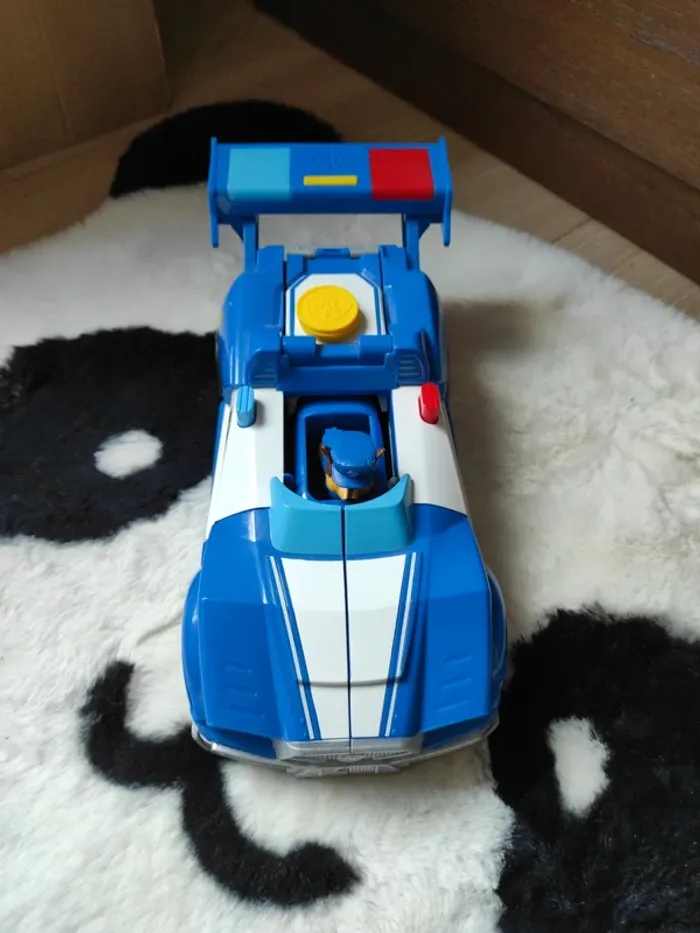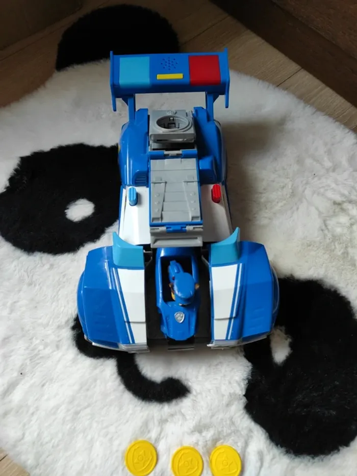🟩PAT PATROUILLE LE FILM - VÉHICULE TRANSFORMABLE CHASE - Voiture de Police Interactive son et lumiére + Moto Pat Patrouille Lance-Projectiles et Figurine Chase 🟩 En Excellent état
