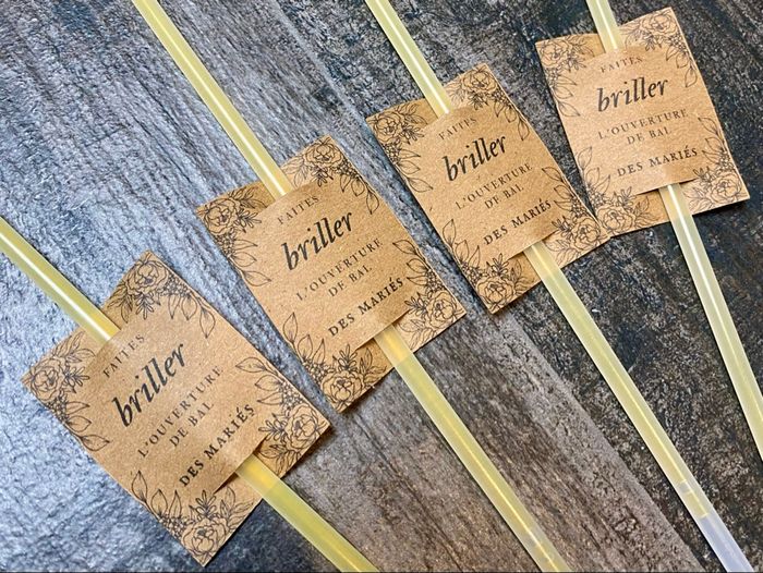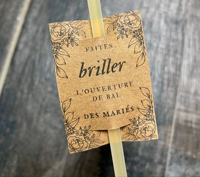 Bâtons ✉️ MP si besoin de changer la couleur, texte, design (je m’adapte à votre thème de mariage) ⚠️ Possibilité d’ajouter prénoms - date 2,5€ les 10 100 bâtonnets lumineux blancs + 100 étiquettes « faites briller l’ouverture de bal des mariés » déja installée 📦 Emballé sous papier bulle - prêt à l’emploi #mariage