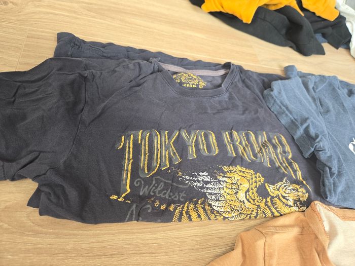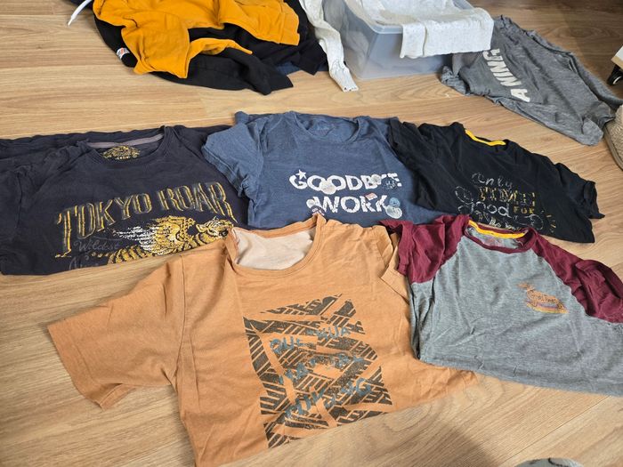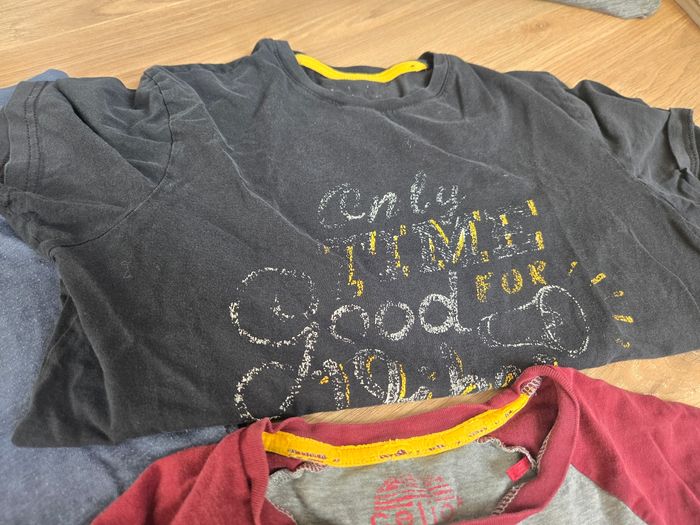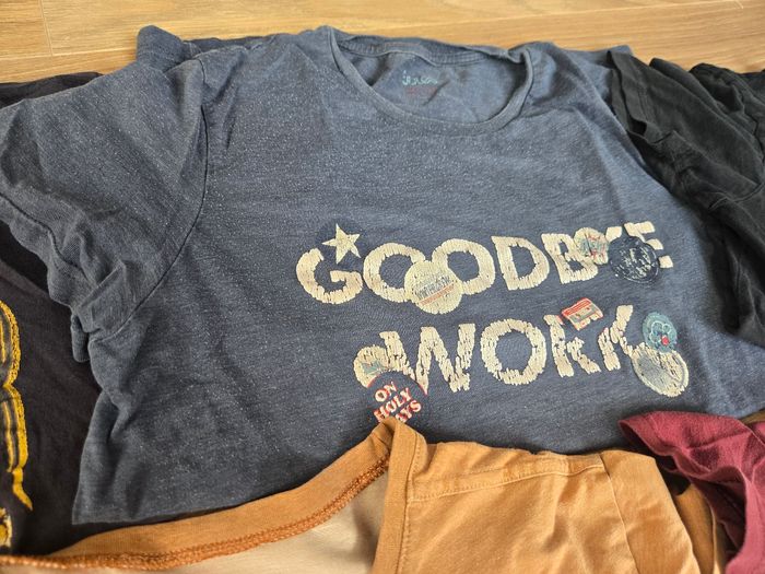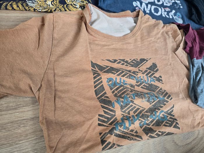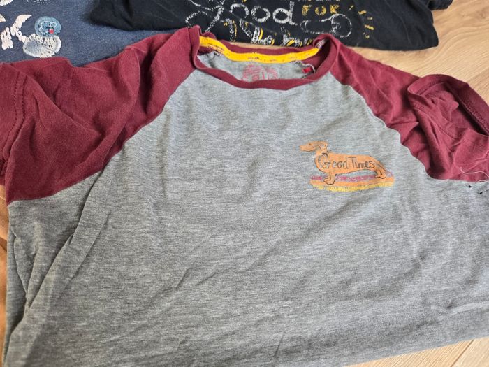 Je vends ce lot de 5 tee-shirts homme avec des marques d'usure. - Type de produit : Tee-shirts - Univers : Homme - Taille : XS - Couleurs : Noir, gris, beige, bordeaux - Caractéristiques : Imprimés graphiques, logos D'autres articles dans ma vitrine, prix sur les lots