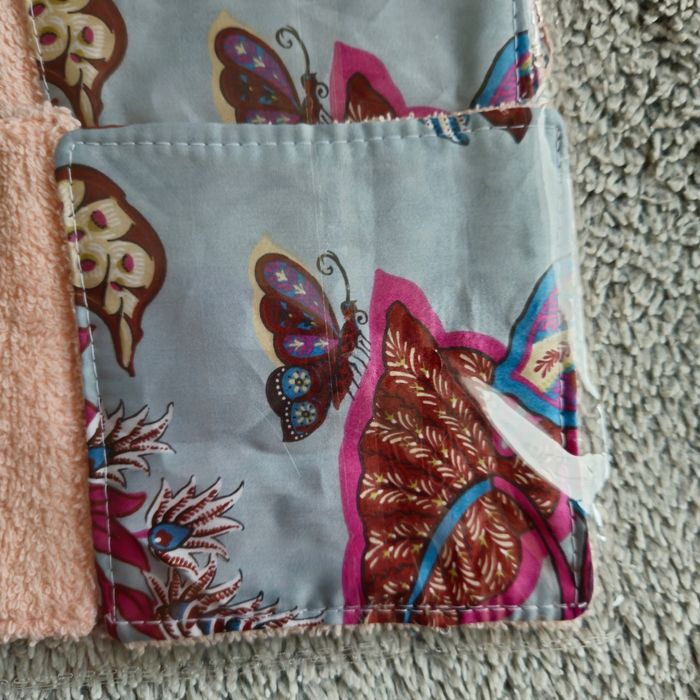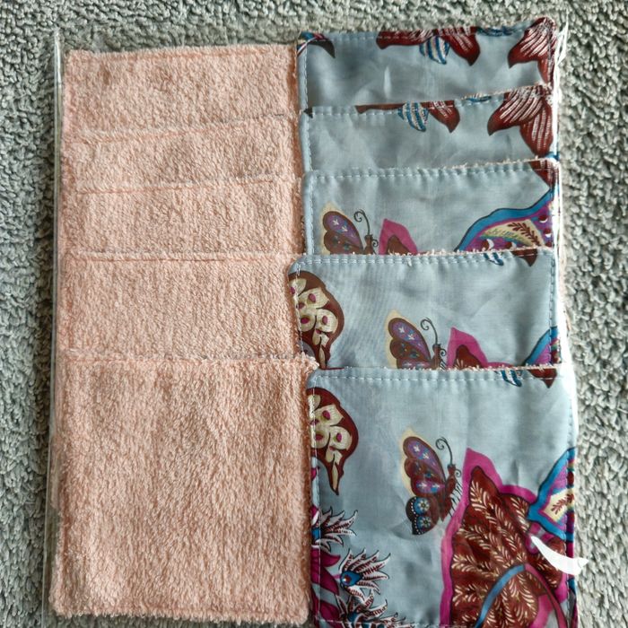 Lot 10 lingettes double face un côté tissu 100%coton motif papillon et un côté éponge de coton rose poudré lavables jusqu'à 60 degrés Taille 12x12 cm Neufs jamais utilisés N'hésitez pas à me contacter pour la création de lots, réduction automatique à partir de 3 articles