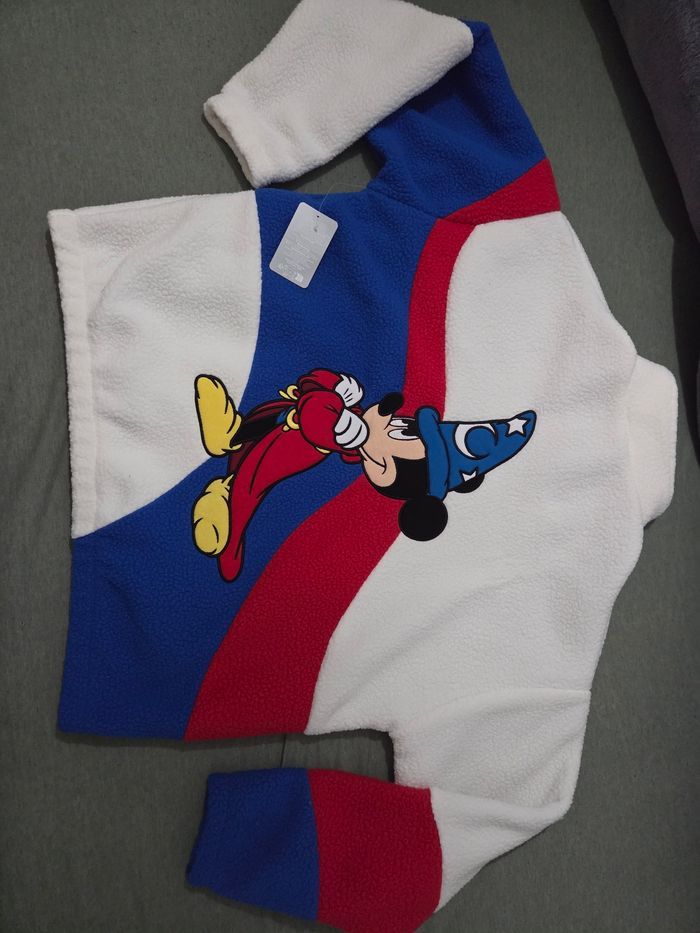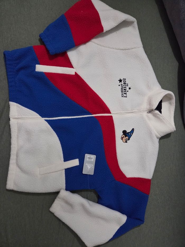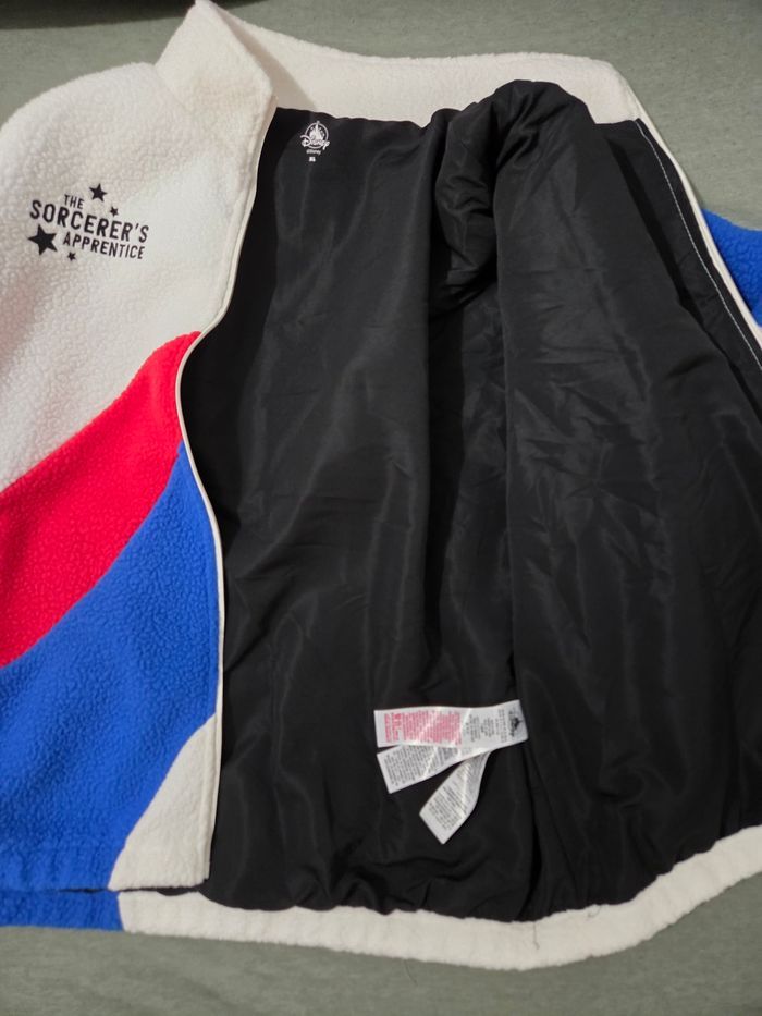 Veste sherpa Polaire logo ©️ Mickey apprentie Sorcier 🧹 🎇 Disneyland Paris ✨️ taille XL Produit neuf Non négociable Plus 1 goodies Disney 🎁 offert =>Taille aisselle à aisselle 70cm et hauteur de l'épaule vers le bas 69cm