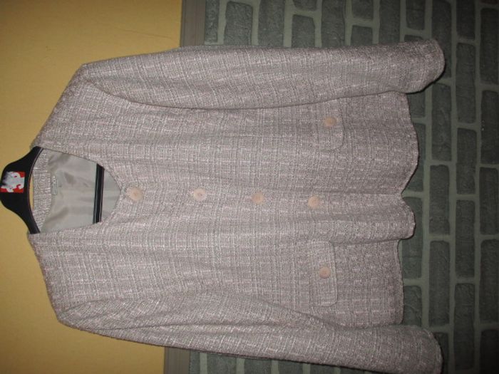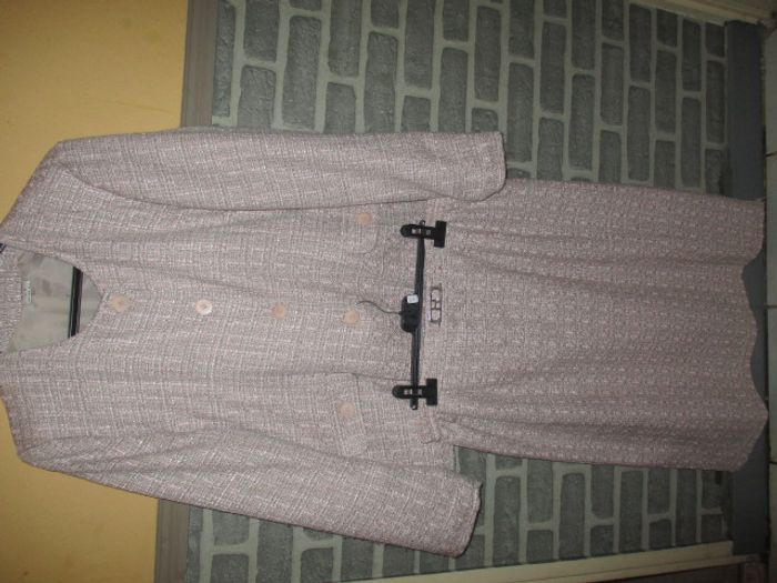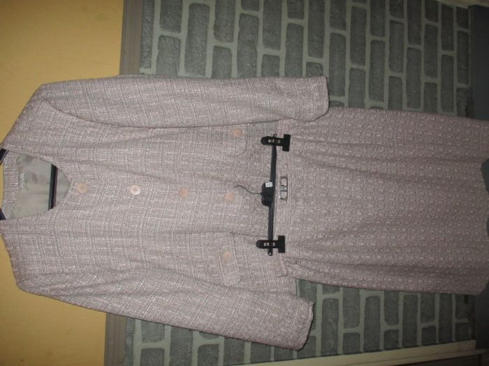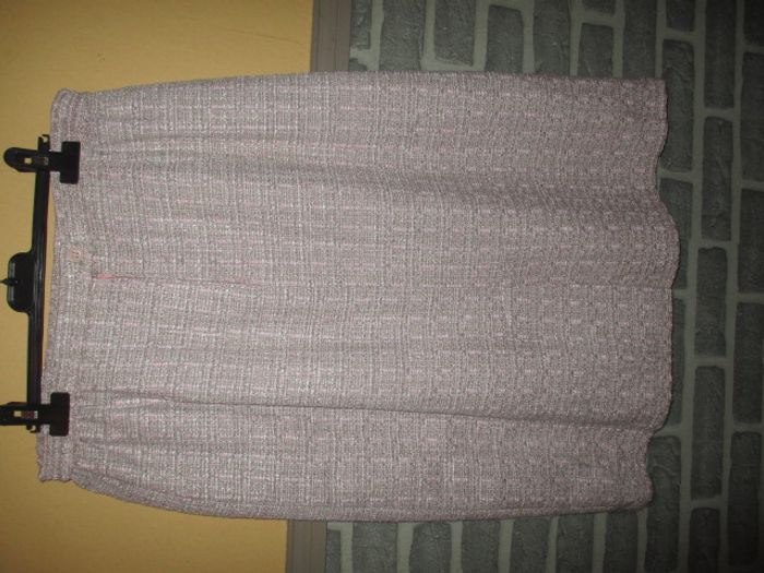 jolis tailleur avec jupe 70 % acrylique 30 % polyester tout neuf jupe doublée et la veste doublée couleurs marron trés clair rose taille 42 ...sans marque ...... ⚠️Pas de photo portées⚠️