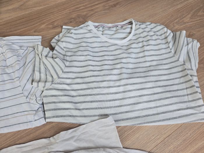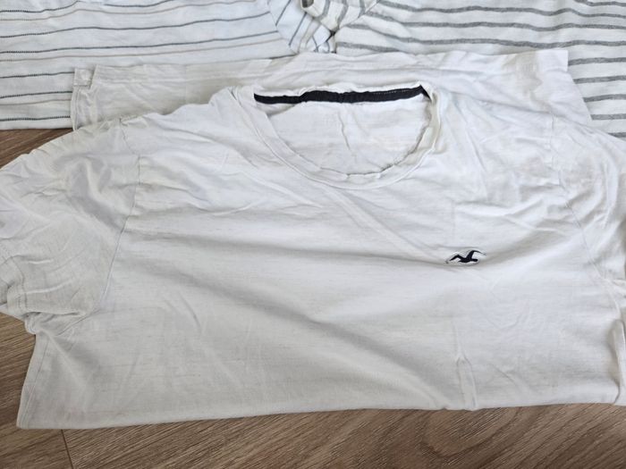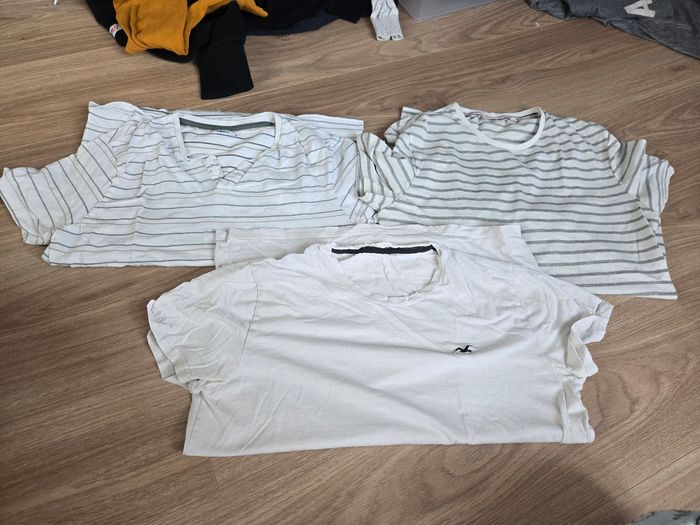 Je vends ce lot de 3 tee-shirts homme blanc avec des rayures. - Type de produit : Tee-shirt - Marque : Jules et hollister - Taille : S - Couleur : Blanc avec rayures - Quantité : Lot de 3 D'autres articles dans ma vitrine, prix sur les lots