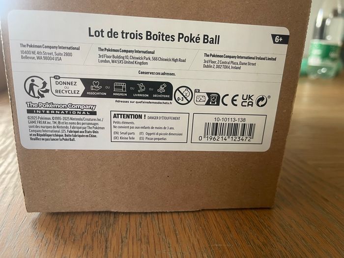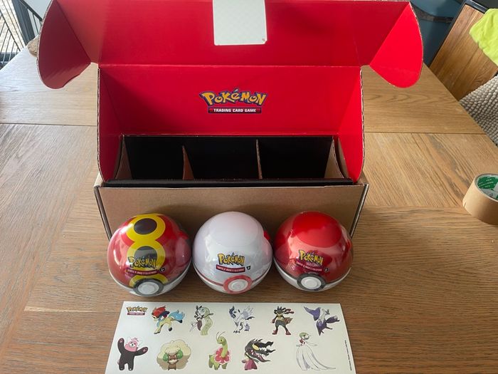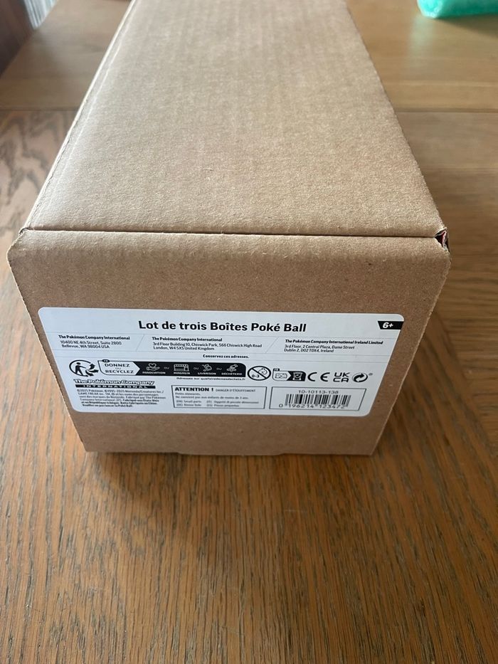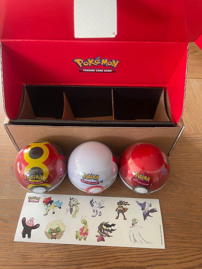 Lot de 3 Poké Ball exclusivité Amazon encore scellé dans l’emballage d’origine. Une plaquette d’autocollants est offerte en plus dans le coffret. Chaque Poké Ball contient 3 boosters et 2 autocollants sont 9 boosters et 6 autocollants au total. Réductions également en cas d’achats groupés avec d’autres produits de mon dressing , allez faire un tour sur mon dressing!😏
