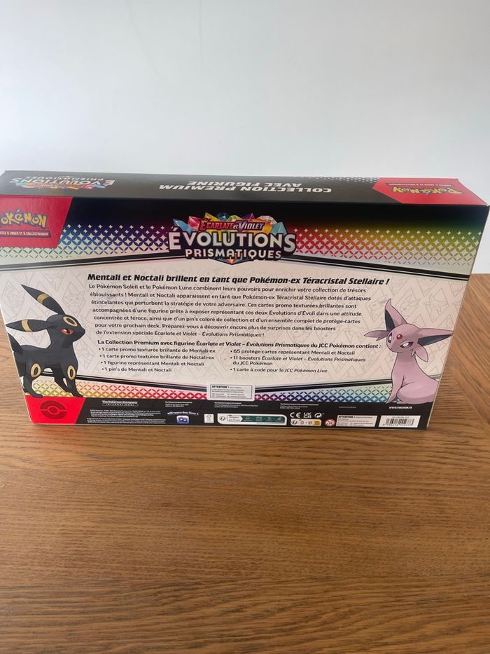 Coffret premium avec figurine de la collection évolutions prismatiques scellé en parfait état. Remise en main propre en Normandie ou envoi soigné sous papier bulle. N’hésitez pas à aller jeter un œil à mes évaluations si vous souhaitez être rassuré par la qualité de mes envois, 100% de clients satisfaits!:-) Réductions également en cas d’achats groupés avec d’autres produits de mon dressing , allez faire un tour sur mon dressing!😏