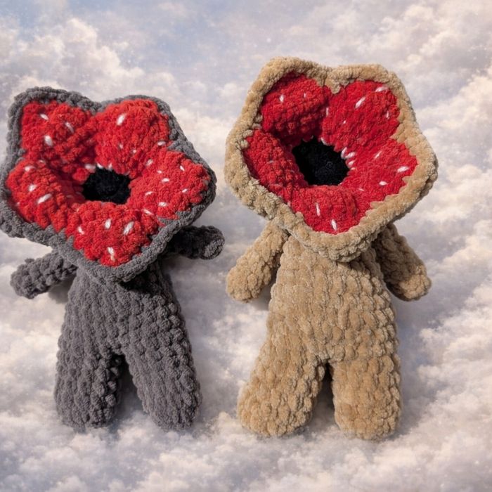 2 démogorgons ✨ Réaliser au crochet à la laine chenille. ✨ Laine certifiée ainsi que la garniture oeko-tex #crochet #amigurumi #demogorgon #lainechenille #faitmain #handman