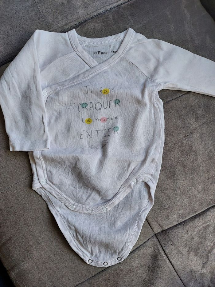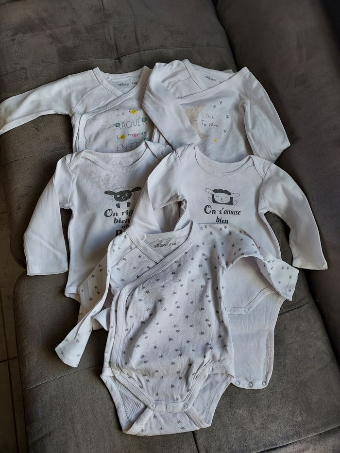 Lot de 5 bodies 9 mois Légèrement taché à certains endroits