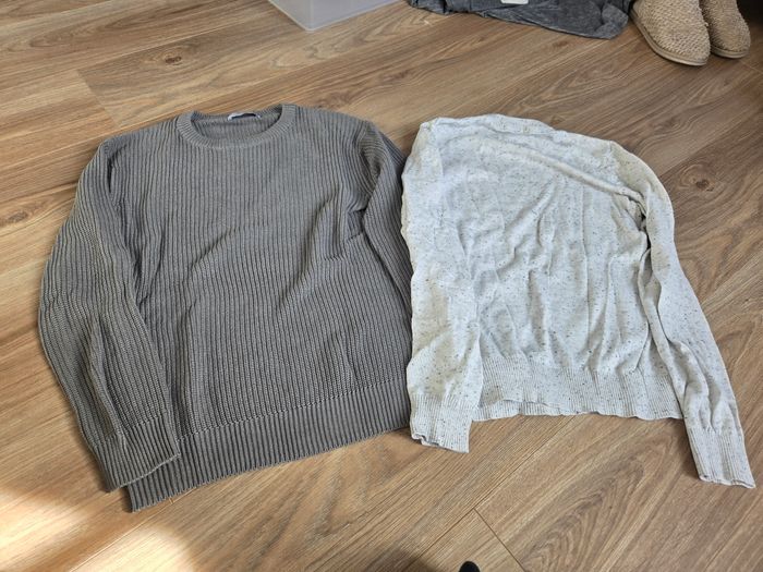 Je vends ce lot de 2 pulls homme de la marque Bershka et bizzbee, de couleur blanche et gris - Type de produit : Pull - Marque : Bershka / bizzber - Taille : XS - Couleur : Blanc /gris - Caractéristiques : Manches longues, Col rond D'autres articles dans ma vitrine, prix sur les lots