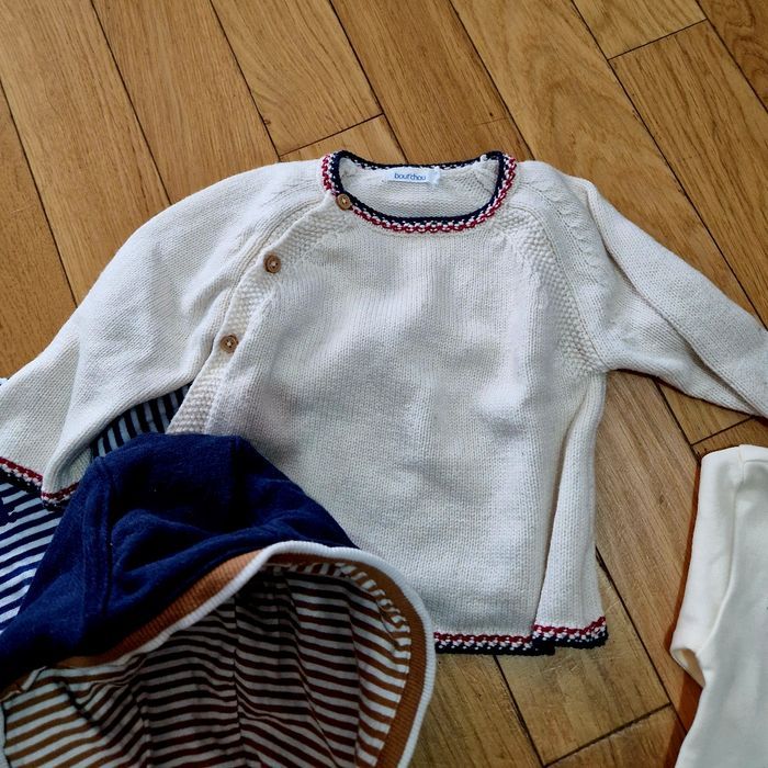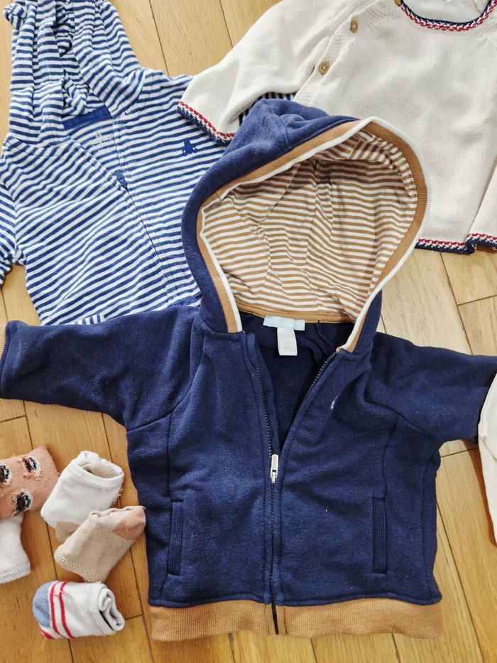2 sweat shirts (Obaïbi et Gap) 1 gilet Bout'Chou 2 bodies manche longue 5 paires de chaussette