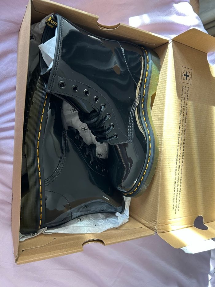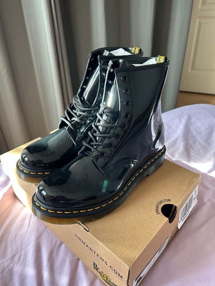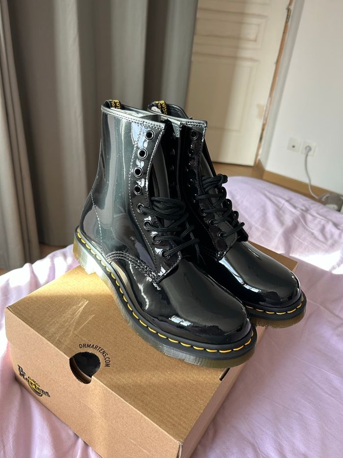Modèle Dr Martens : BOOTS 1460 EN CUIR VERNI NOIR À LACETS, paire neuve car trop petite pour moi, possibilité d’avoir des photos en plus, modèle original, je peux envoyer la facture ! Prix neuf sur le site : 200€ PRIX NÉGOCIABLE RAISONNABLEMENT ! 😁 Envoi rapide et soigné 🥰