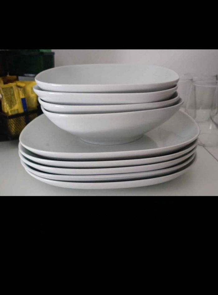 5 assiettes plates 4 assiettes à dessert 4 assiettes creuses 4 verres