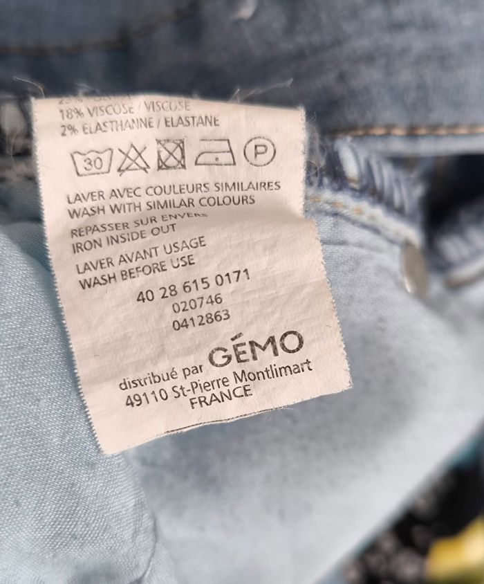 Jean fin 36 Gémo Étiquette taille manquante
