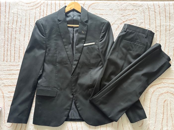 Costume noir de la marque Zara. Ensemble veste taille 46 et pantalon 36 Parfait pour un mariage travail cérémonie examen.