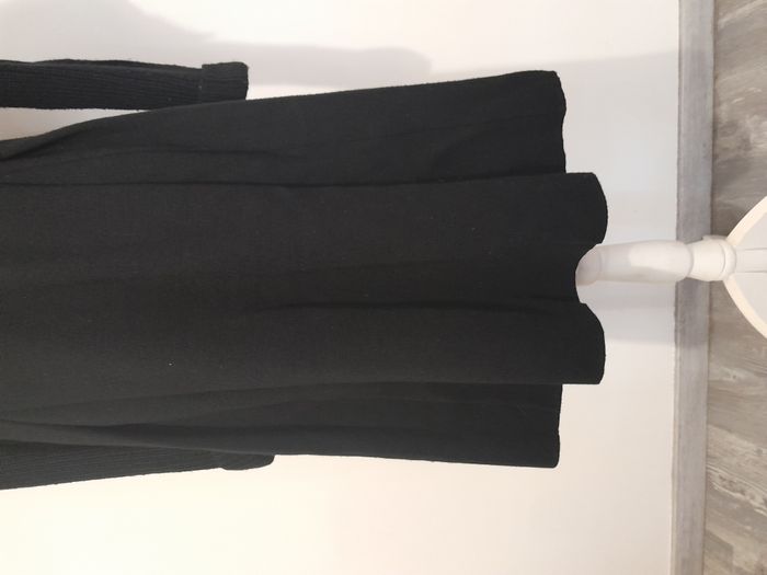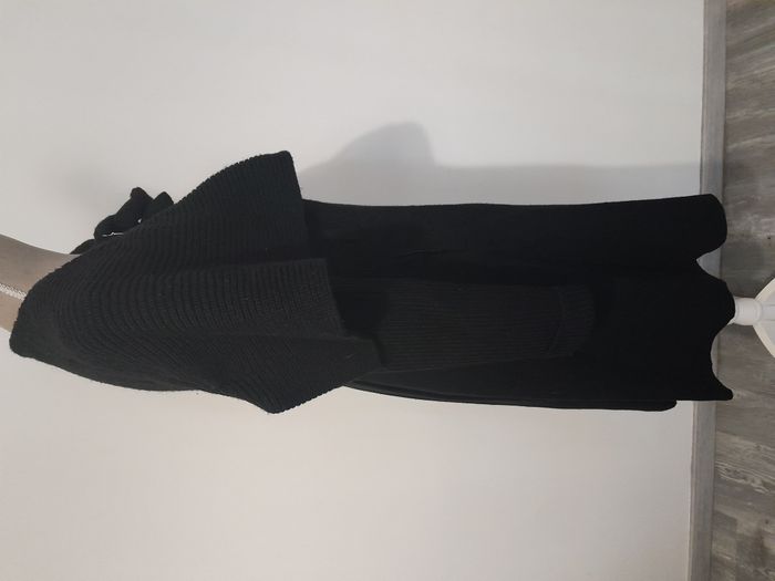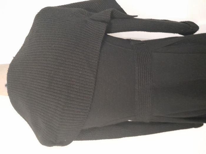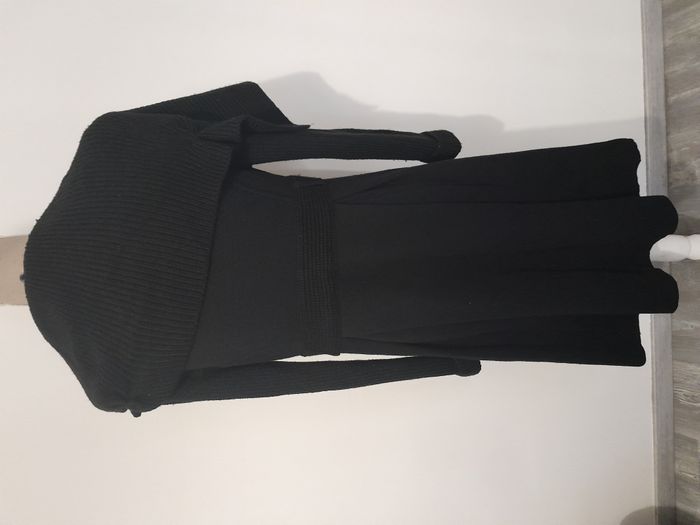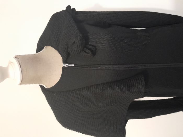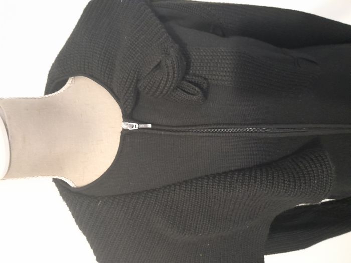Manteau, de forme originale, manche et tour de col en laine, 2 poche, attache fermeture éclair devant Longueur : 100cm Aiss / Aiss : 53cm Matière : 50 % Laine, 50 % Acrylique Marque : Alain Murati Collection